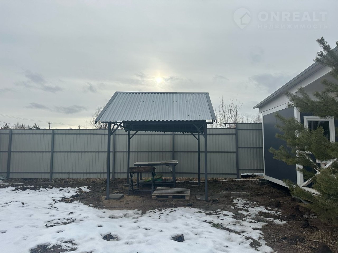 Участок ровный, подготовлен к освоению, оборудована шашлычная зона, по фасаду выполнен дренаж , произведена щебеночная подготовка авто парковки.