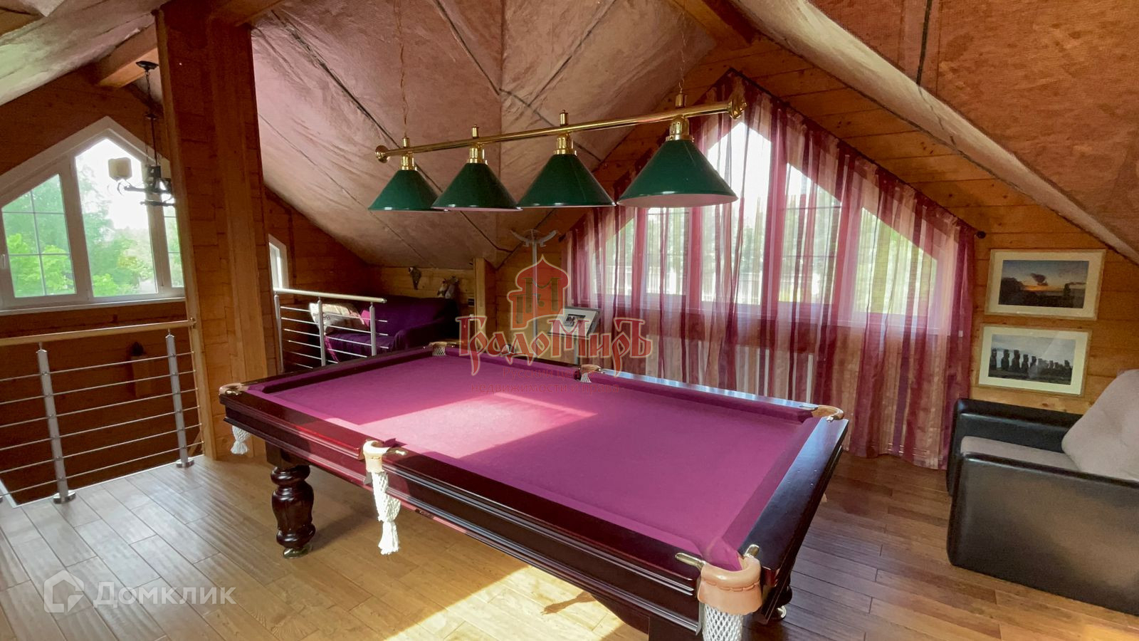 На первом этаже расположились кухня-гостиная, спальня, санузел, сауна с джакузи. С первого этажа есть выход на террасу. На втором этаже просторная бильярдная комната с русским бильярдом. Дом полностью укомлпектован мебелью и бытовой техникой. Есть посудомоечная машина, духовой шкаф, стиральная машина и все самое необходимое для комфортной жизни.