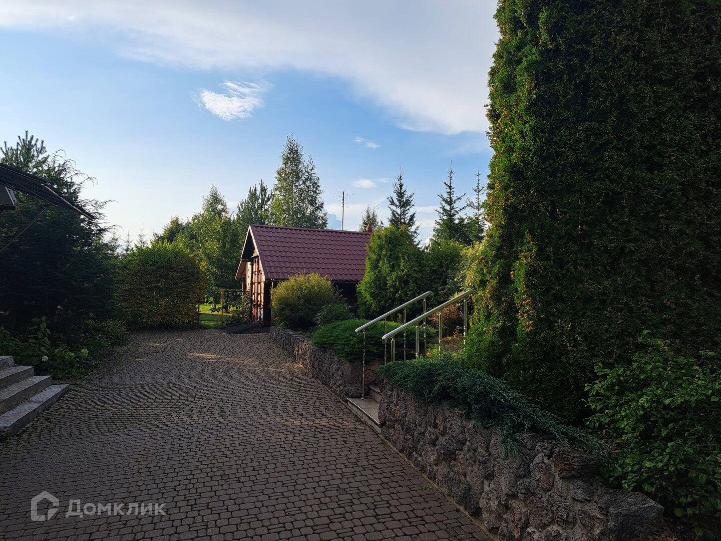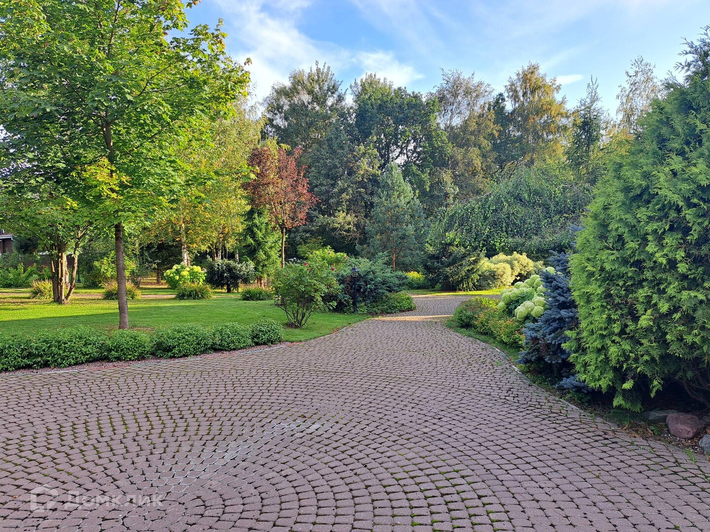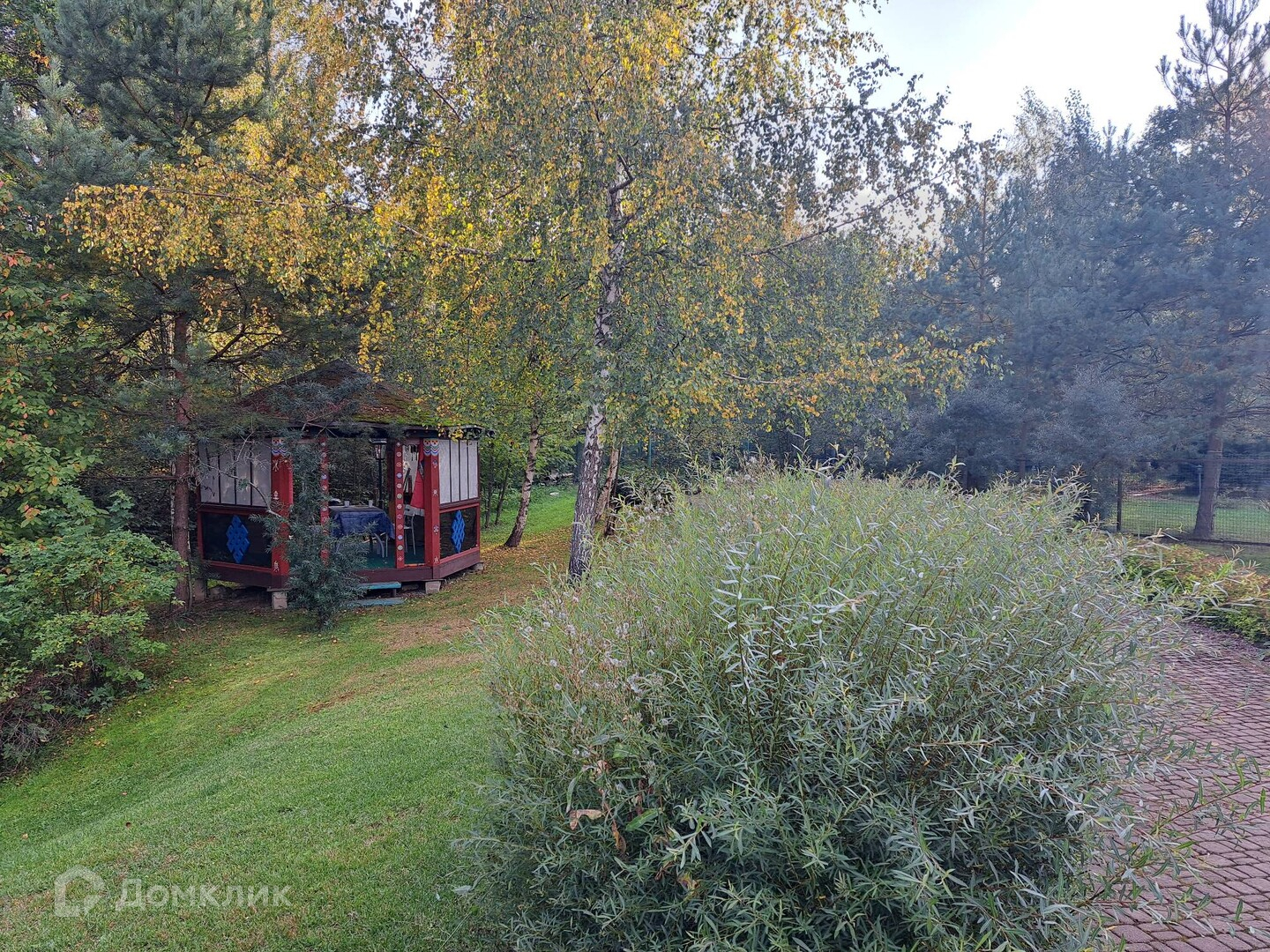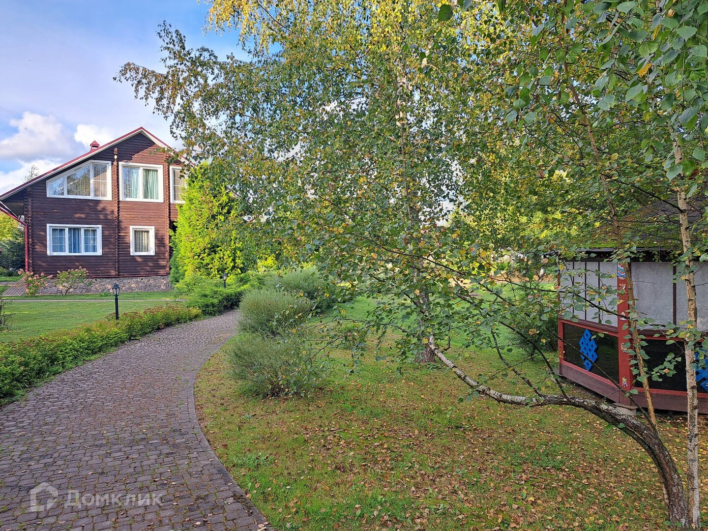 Территория участка (20 соток) оборудована как парк -ухожена, облагорожена ,ландшафтный дизайн, множество культурных насаждений, детская и спортивная площадки( баскетбольное поле),обустроен и освещен свой выход в живописный лесной массив и на водоем с песчаным пляжем (аллея с уличными фонарями). Также на территории имеется беседка(зона барбекю).
