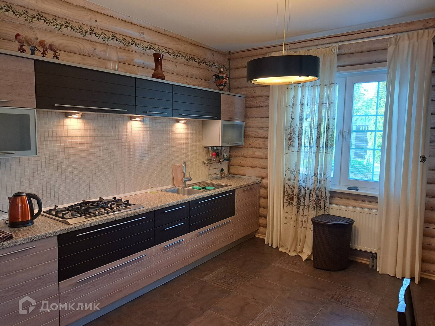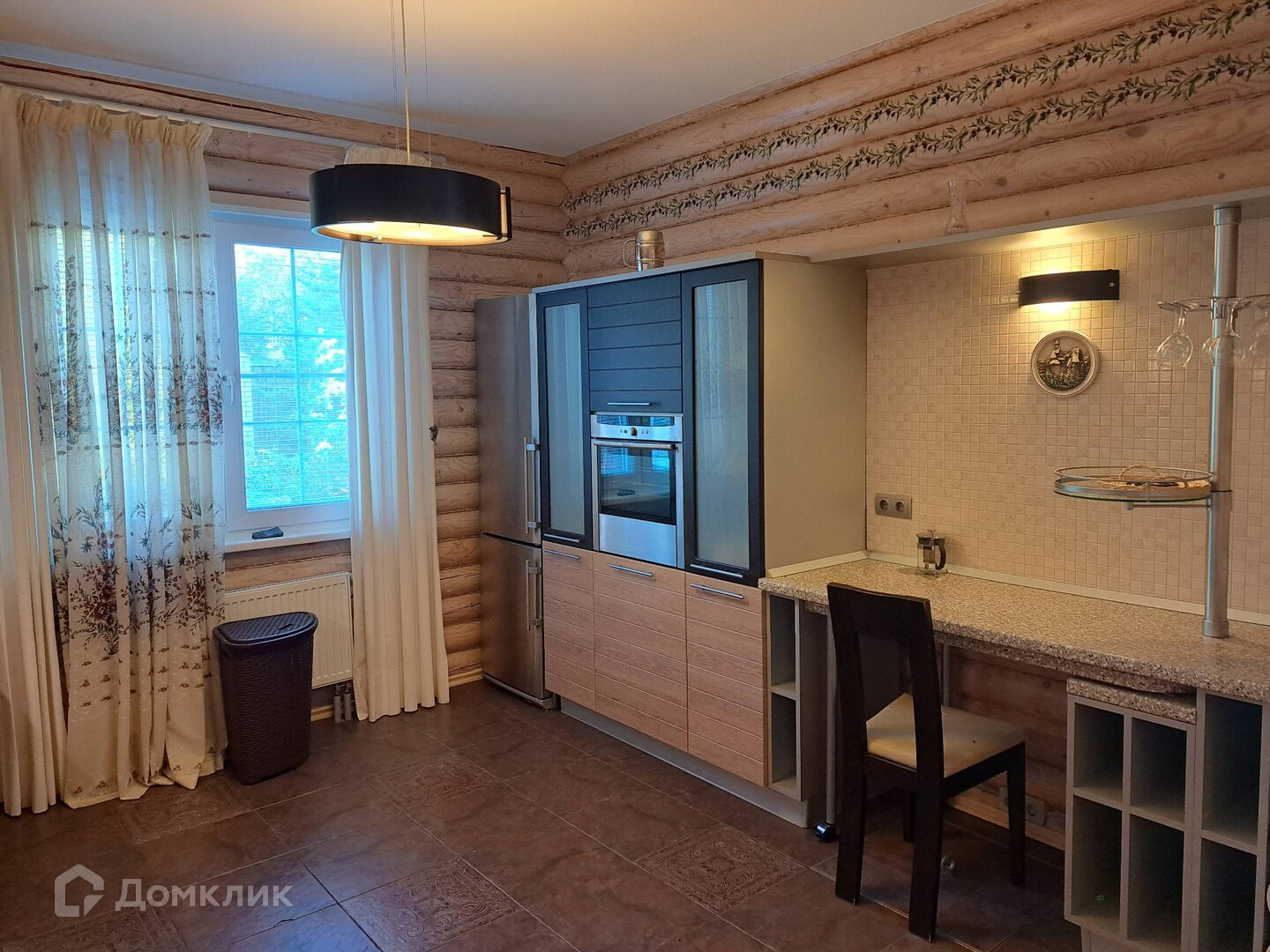 Материал стен бревно (диаметр 20),утеплен и обшит блок Хаусом, фундамент ленточный. Дизайнерский евроремонт, остается мебель и техника. В доме 5 комнат, большая гостиная с красивым камином на дровах, уютная веранда, 2 санузла.