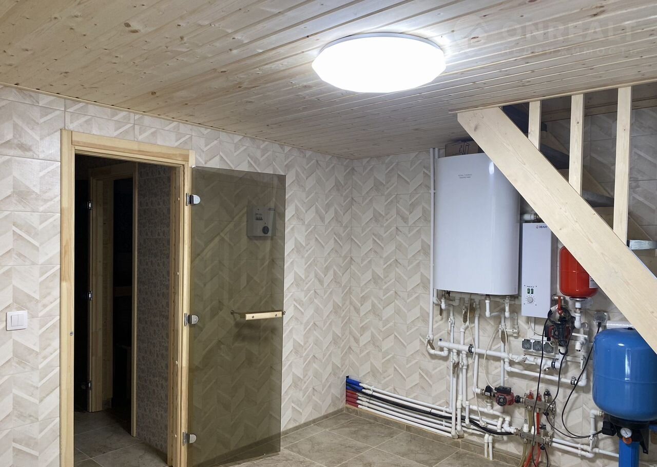 Сауна из натуральных материалов, санузел, кухня с бойлерной.