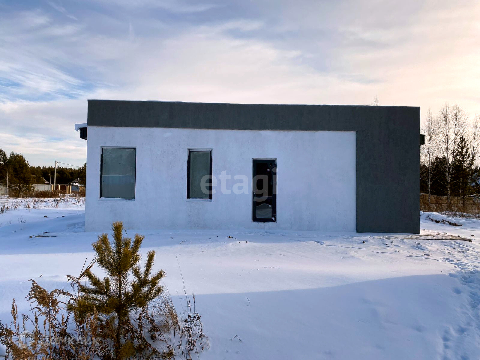 — У дома классическая двухскатная крыша, визуально же выполнен в стиле Флэт бокс.