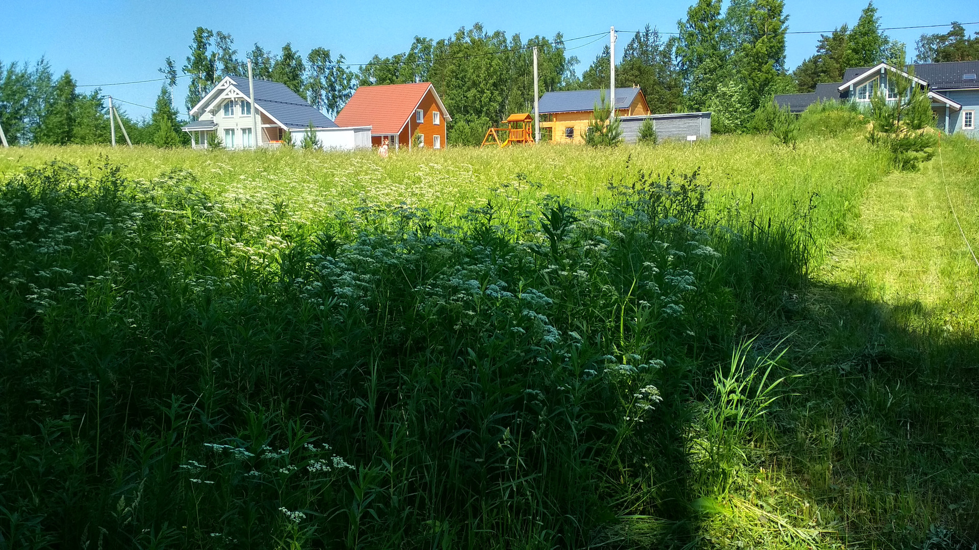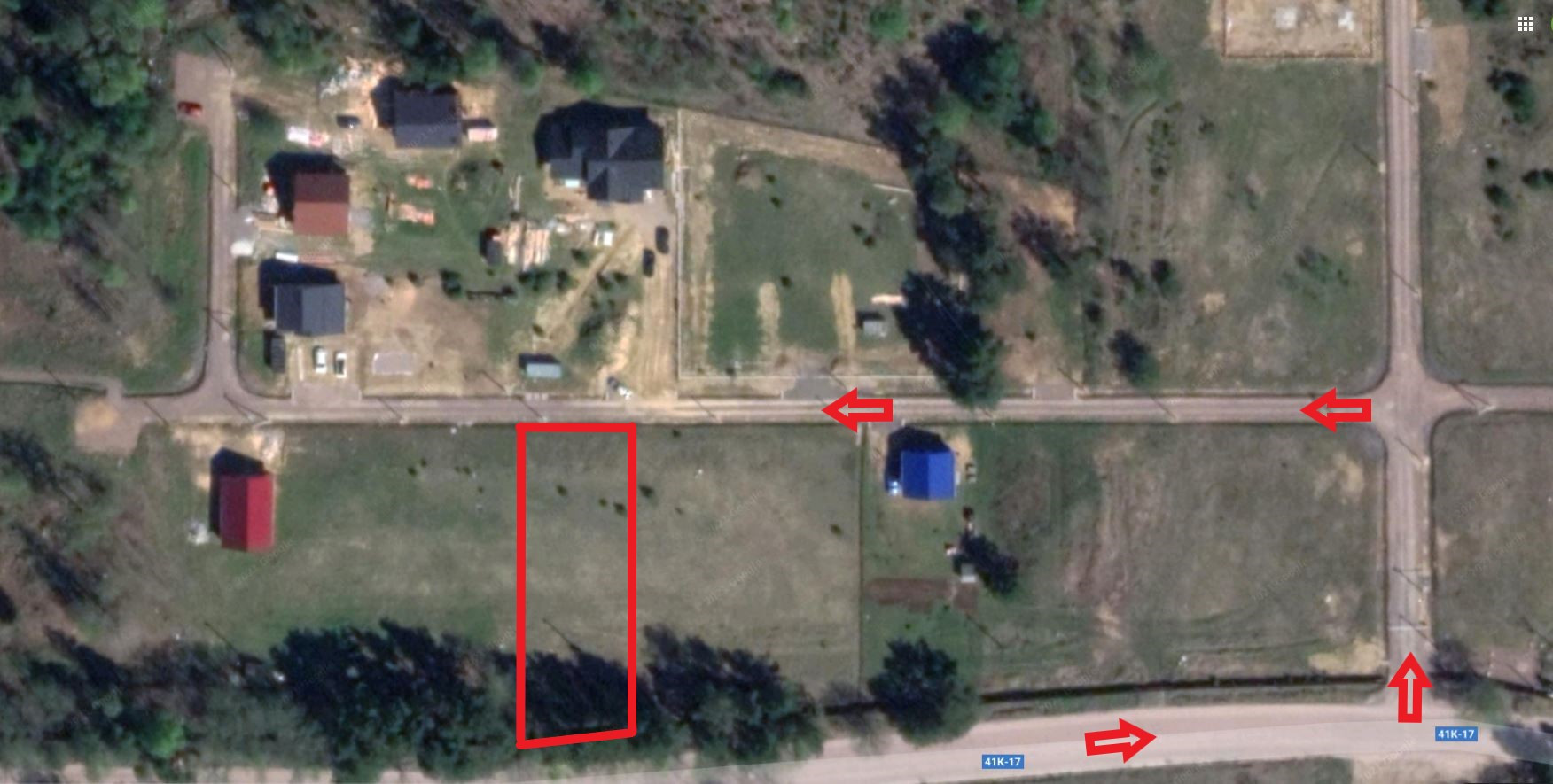 Участок находится в малой и тихой части поселка, которая имеет отдельный въезд. Минимум соседей и транспорта, никакой пыли. Доступ пешком или на велосипеде к детской площадке, зоне отдыха с гамаками, тренажерами и футбольным полем или к пляжу на озере.