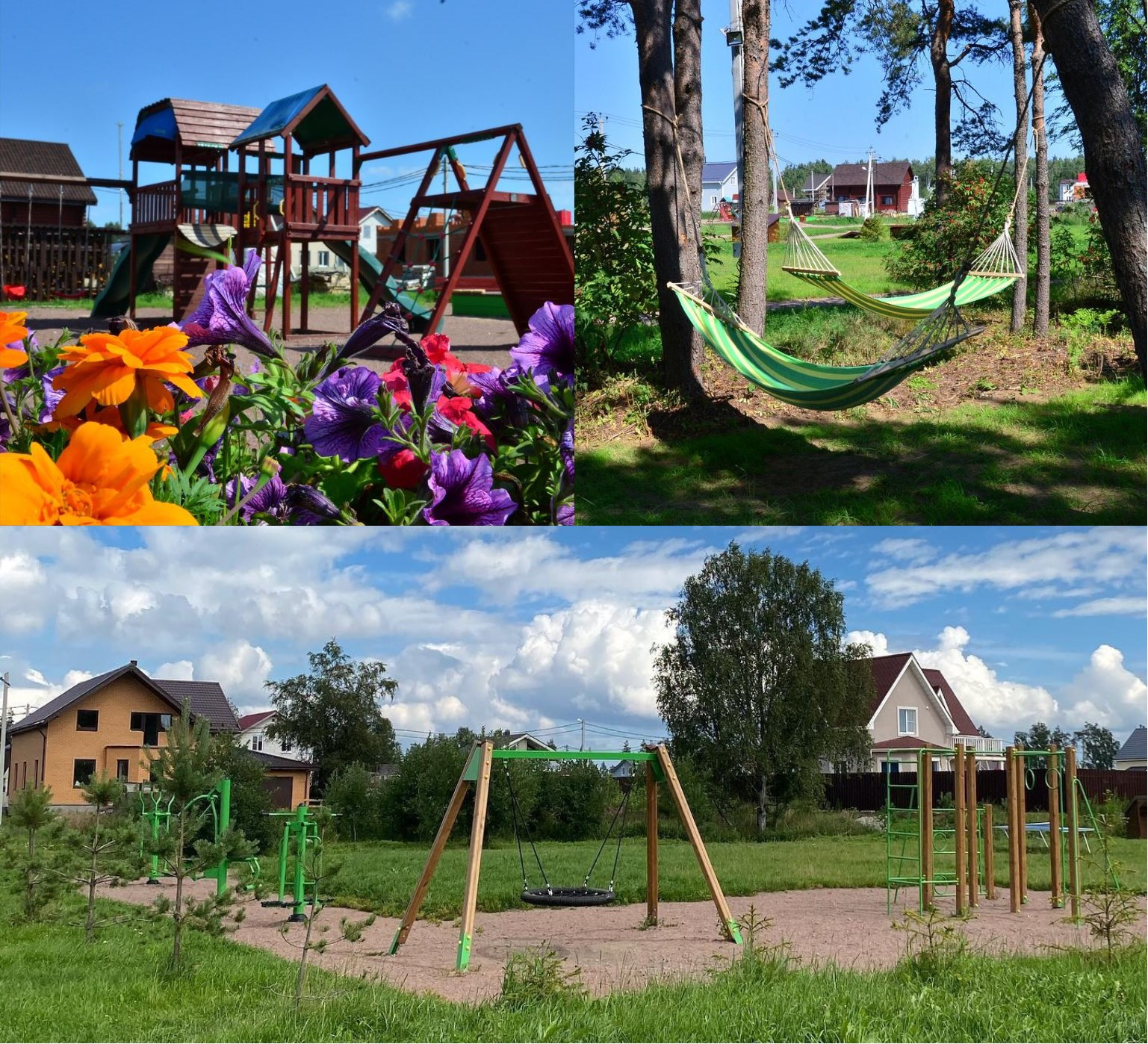 В центре поселка расположена большая детская площадка, футбольное/волейбольное поле, тренажеры для занятия спортом и зона отдыха с гамаками и лавочками. В зимнее время поле заливается под каток. Проводятся праздники, новогодние елки, масленицы. Поселок практически полностью построен, большинство собственников проживает круглогодично. Высокий социальный уровень жителей.