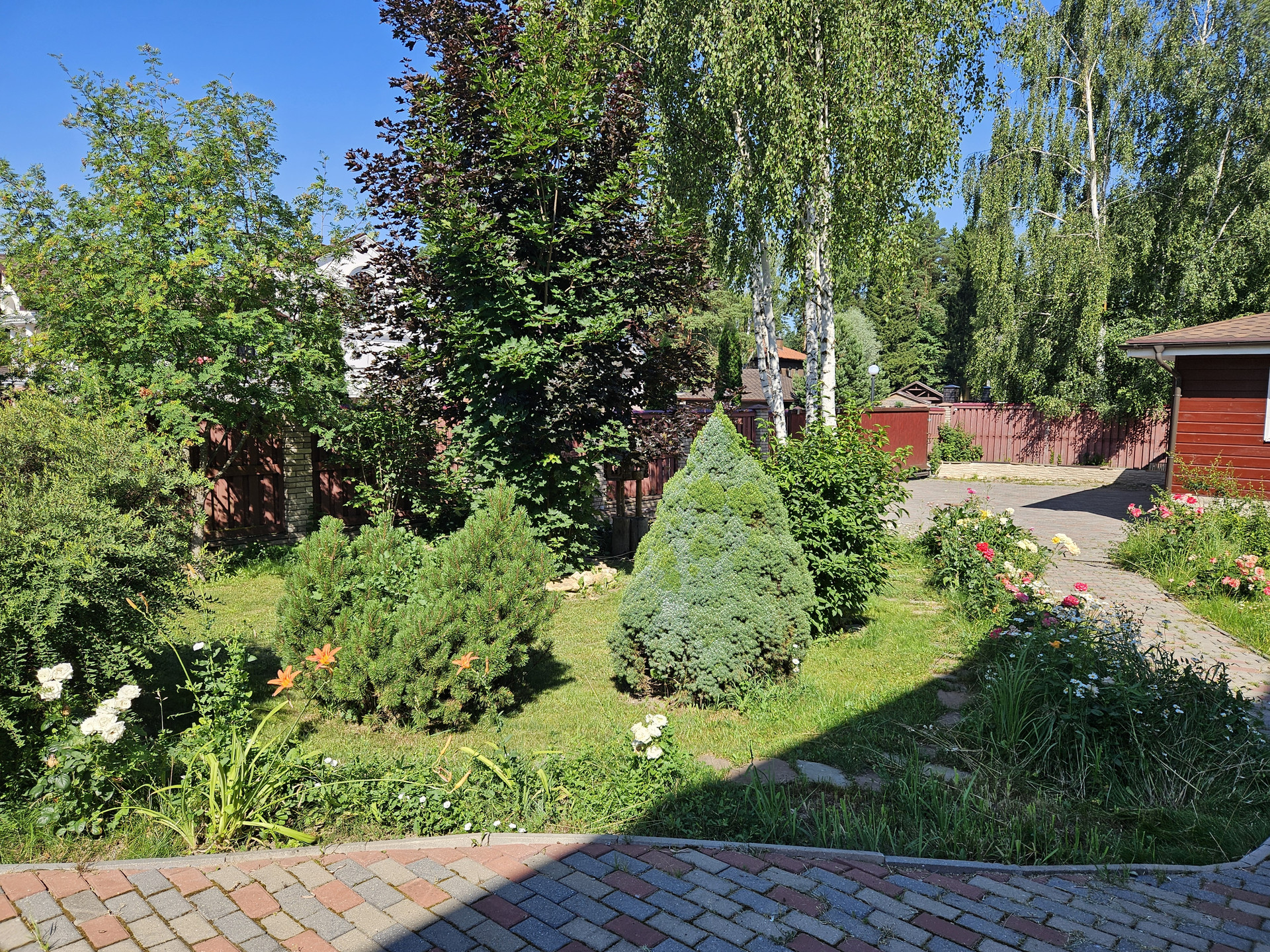 Участок 30,47 соток квадратной формы с собственным выходом в заповедник Подольского лесничества. Автоматические откатные ворота 6 метров, очень большая парковка из тротуарной плитки перед воротами и внутри участка. На участке организованы дорожки (площадью 6 соток) для прохода и проезда на велосипеде/электросамокате, высажен газон. Плодовые кусты: крыжовник, малина, смородина, ежевика. Фруктовые деревья - яблони, сливы, вишня, груша, облипиха. Много зелени - розы, пионы, сирень, гартензия, лилии, рябина, коника, мелкие кустарники, клумбы, садовые фигурки, пихты... Спортивная площадка. Большая стеклянная теплица.