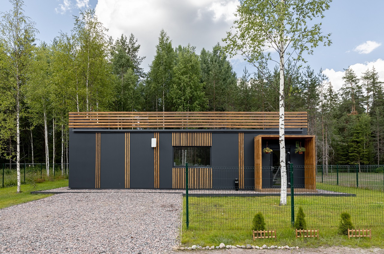 • Фасад из фиброцементных панелей.