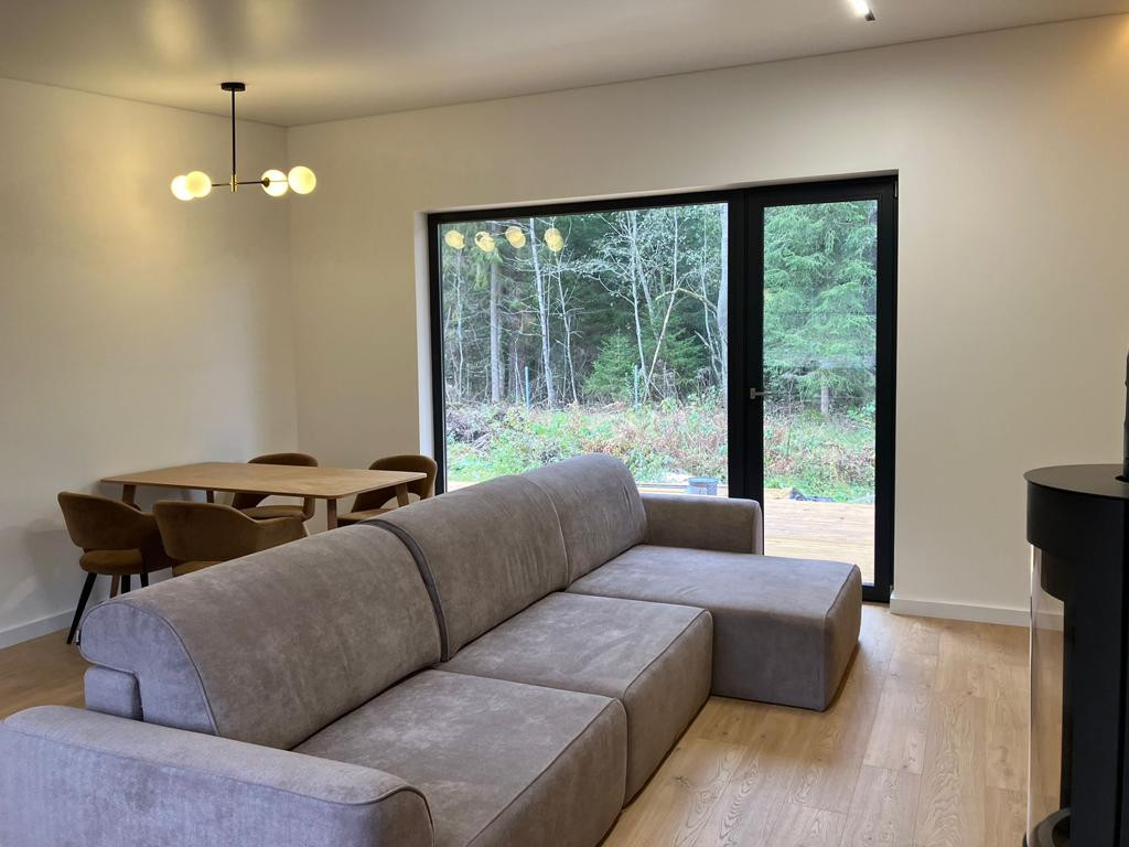 Видовой участок. Все панорамные окна и терраса обращены к лесу.