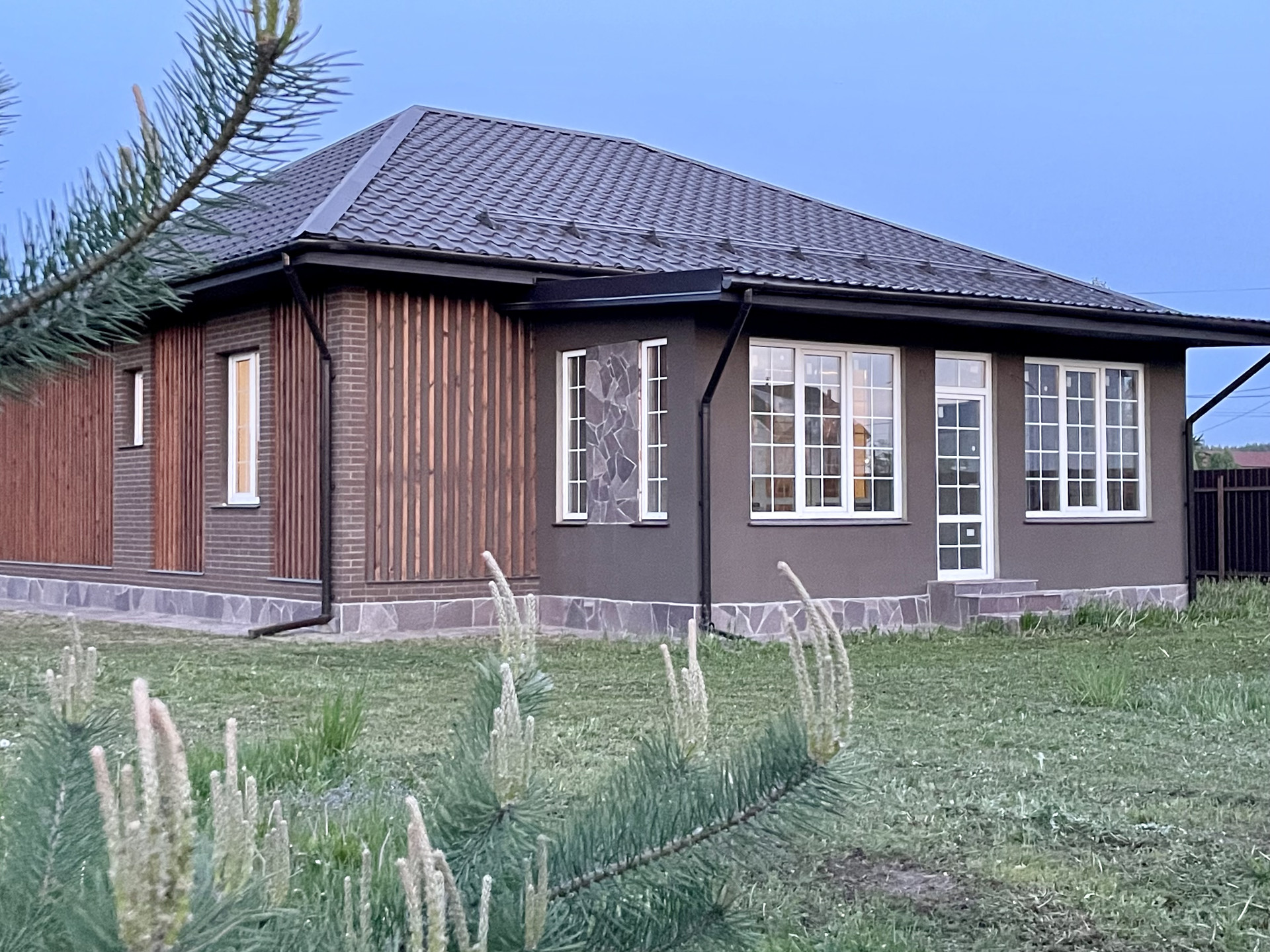 1-этажный коттедж из газобетона плотностью D400 на монолитной подушке с велюровой крышей