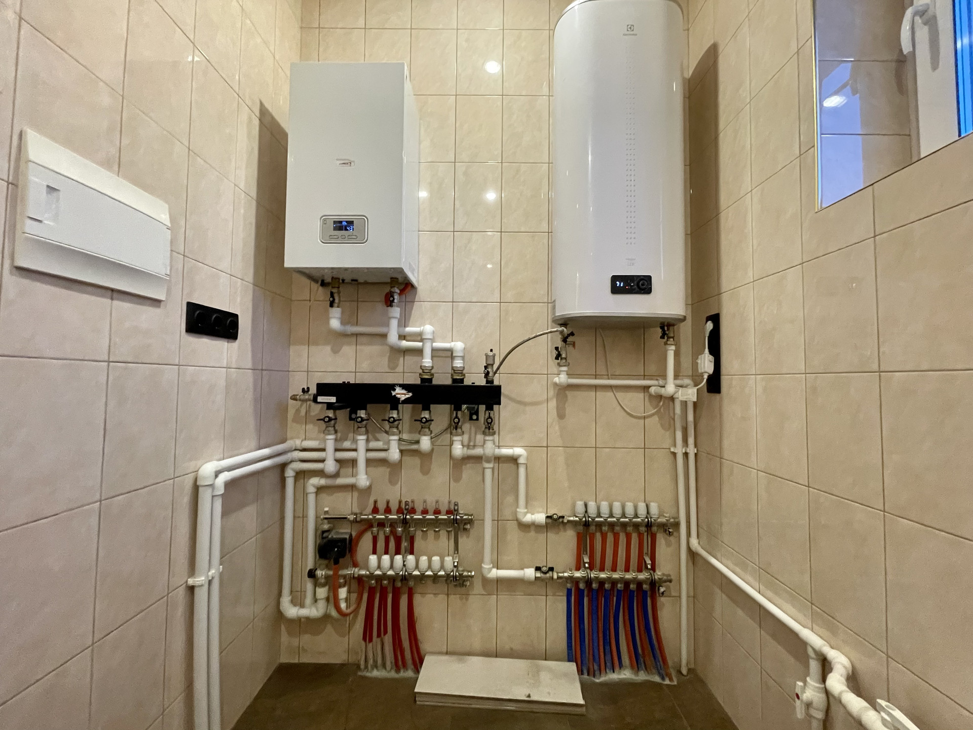 Теплые полы по периметру этажа, кроме спален