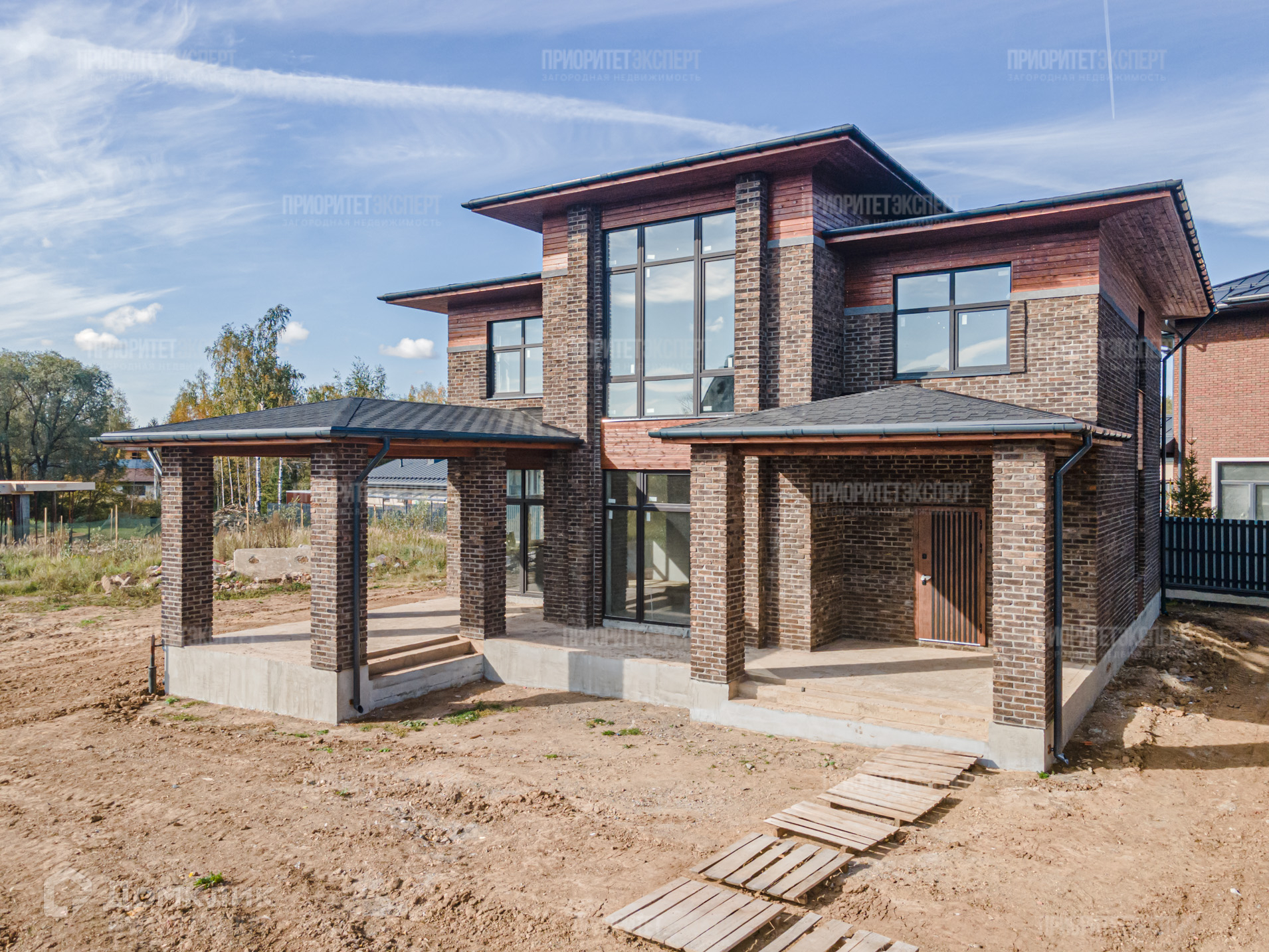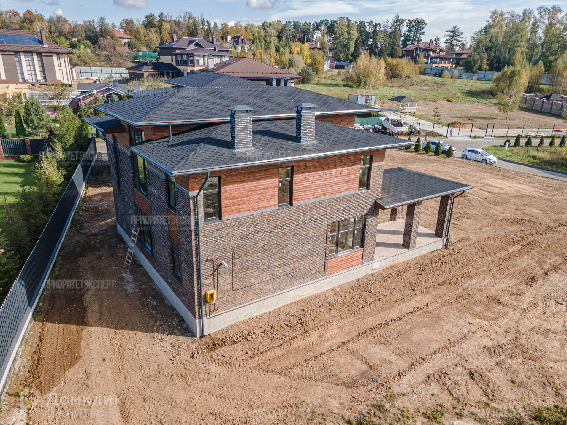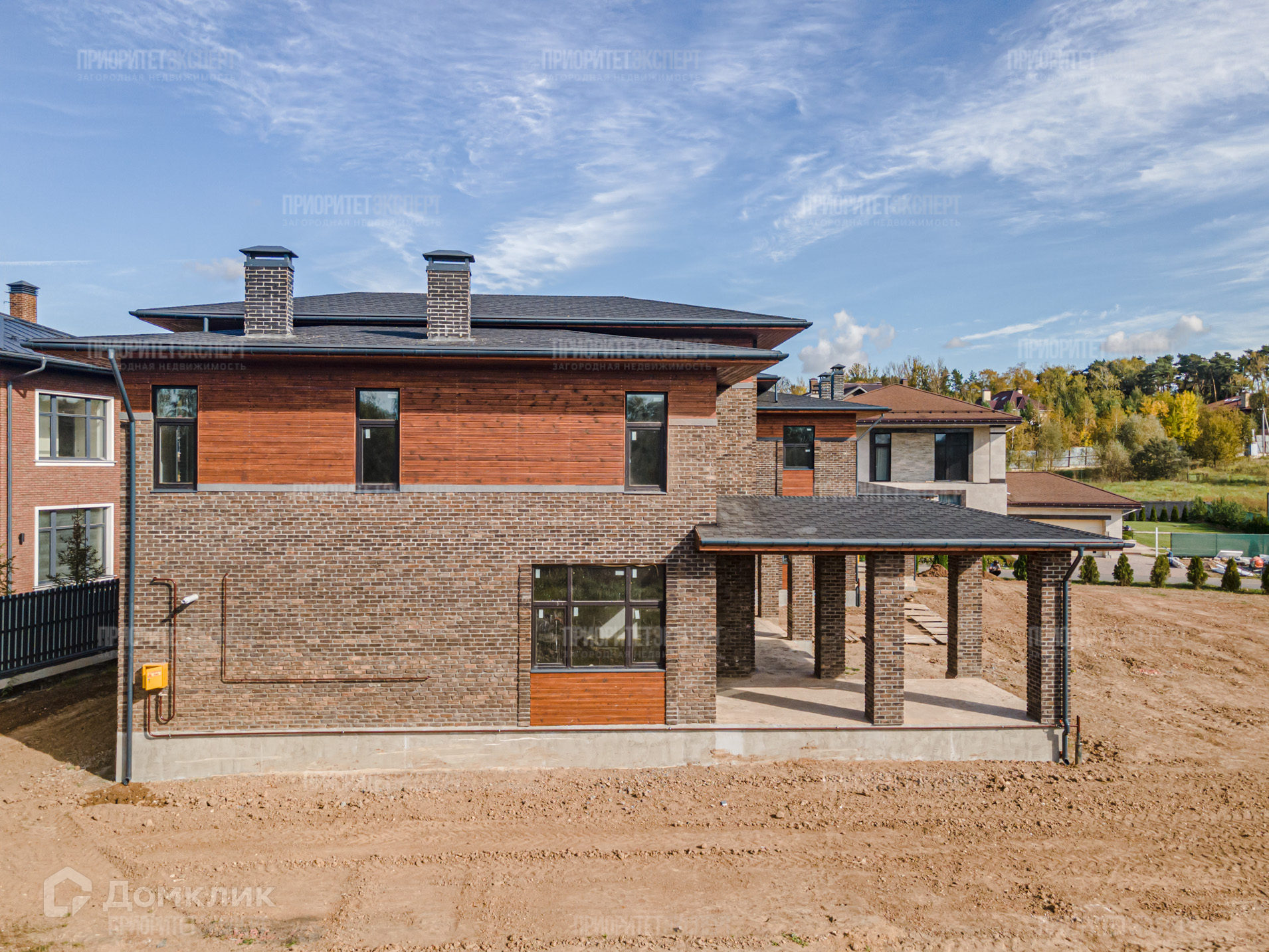 Дом: Новый дом 300 м2 под отделку. Расположен в строго охраняемом поселке бизнес класса. Просторные комнаты, высокие потолки, современная планировка. Навес для авто. Фундамент: монолитная плита. Стены: кирпич + фасадный кирпич ручной формовки. Монолитные перекрытия между этажами. Монолитная лестница. Крыша: мягкая кровля.