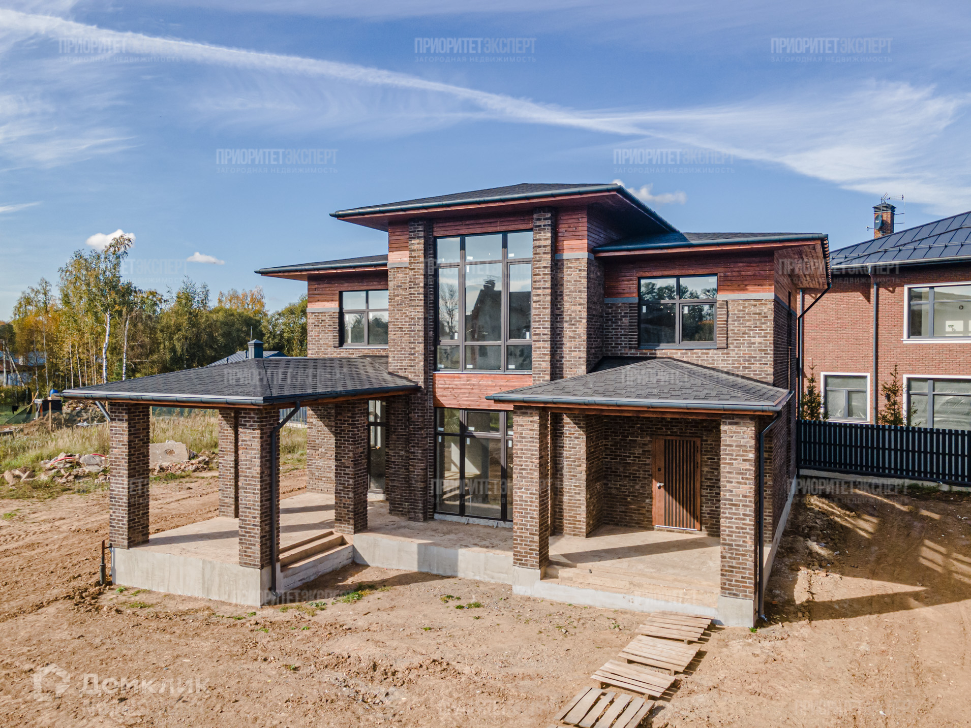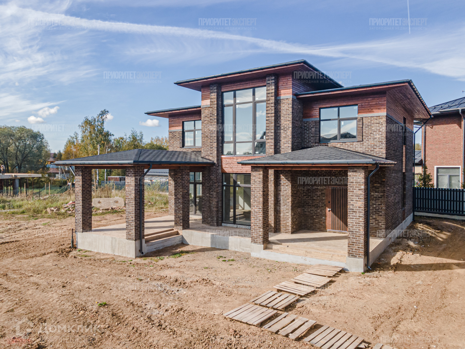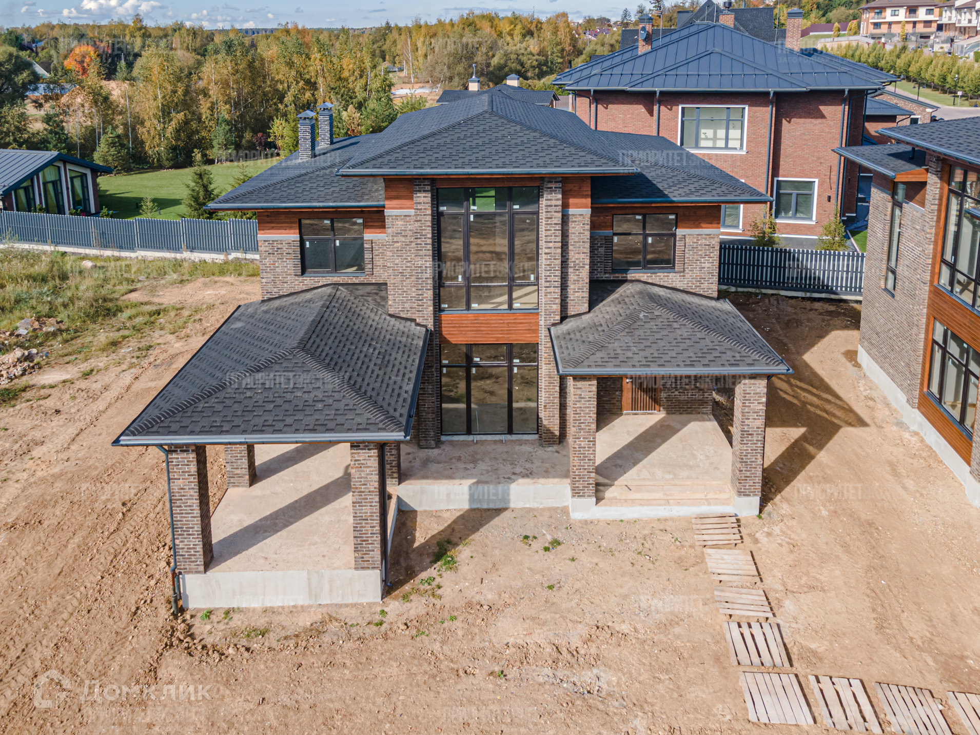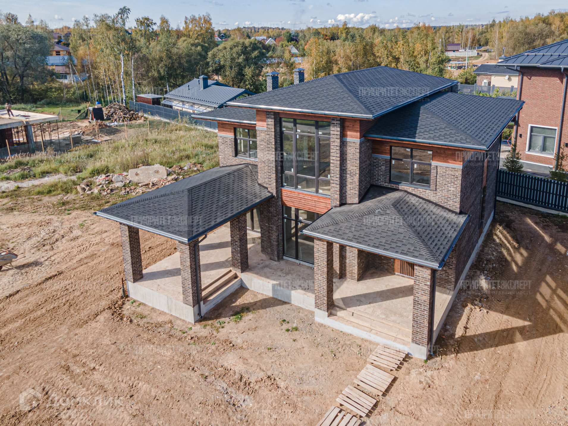 Дом: Новый дом 300 м2 под отделку. Расположен в строго охраняемом поселке бизнес класса. Просторные комнаты, высокие потолки, современная планировка. Навес для авто. Фундамент: монолитная плита. Стены: кирпич + фасадный кирпич ручной формовки. Монолитные перекрытия между этажами. Монолитная лестница. Крыша: мягкая кровля.