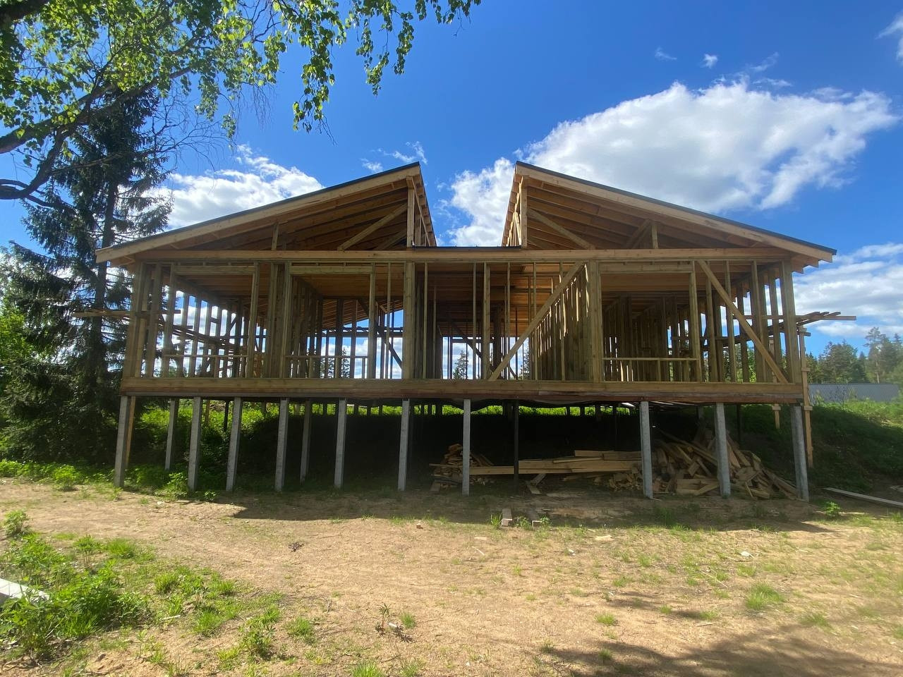 Добрый день! Пожалуйста читайте до конца! Продаю большой дом и  участок на берегу озера. Всего в 30 км от Санкт-Петербурга (регистрация земли, собственность)! Первая линия (от террасы до воды 10 метров). На участке берёзы, сосны, ели. Место действительно красивое и перспективное. Скважина от посёлка 303 метра, Электричество 15 кВт,  газ в поселке магистральный. Участок два уровня ,делал трактор. Фундамент 12х16 . Идёт строительство дома, постелен металл на крышу. Затем вставляют окна и двери (цена будет рости, из расчёта вложений). Коттедж с гостевым домом.  Данная стоимость : за данный этап работ. Материал закупается регулярно. Куплены двери, окна, входные группы и т.д. Закуплен брус на добротную баню. Бытовка на участке. Поселок с возможностью пмж (рядом садик, две школы, поликлиника). Плата в месяц за КУ 1300 РУБ. Причина продажи, срочная покупка квартиры. Возможен обмен на квартиру.
