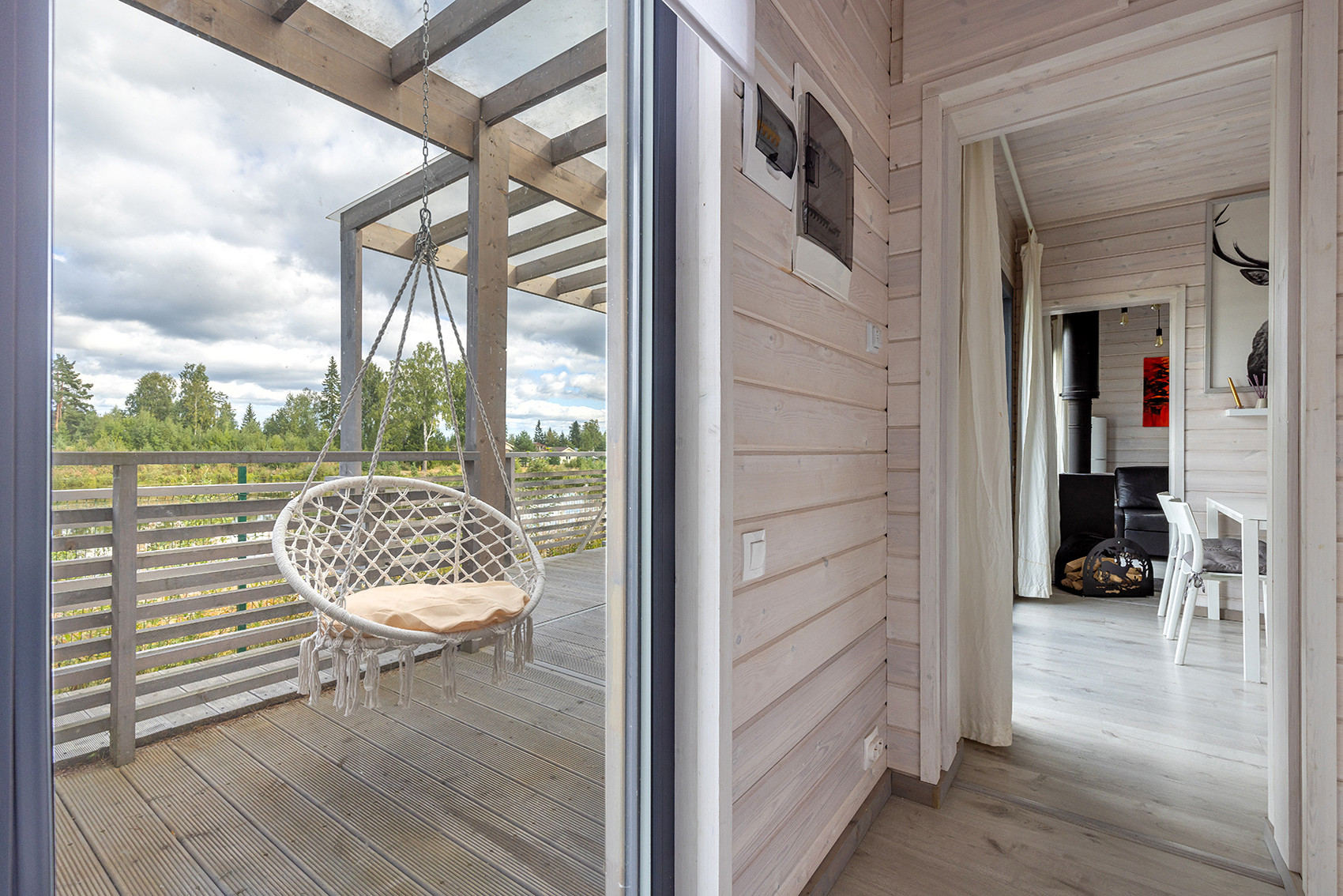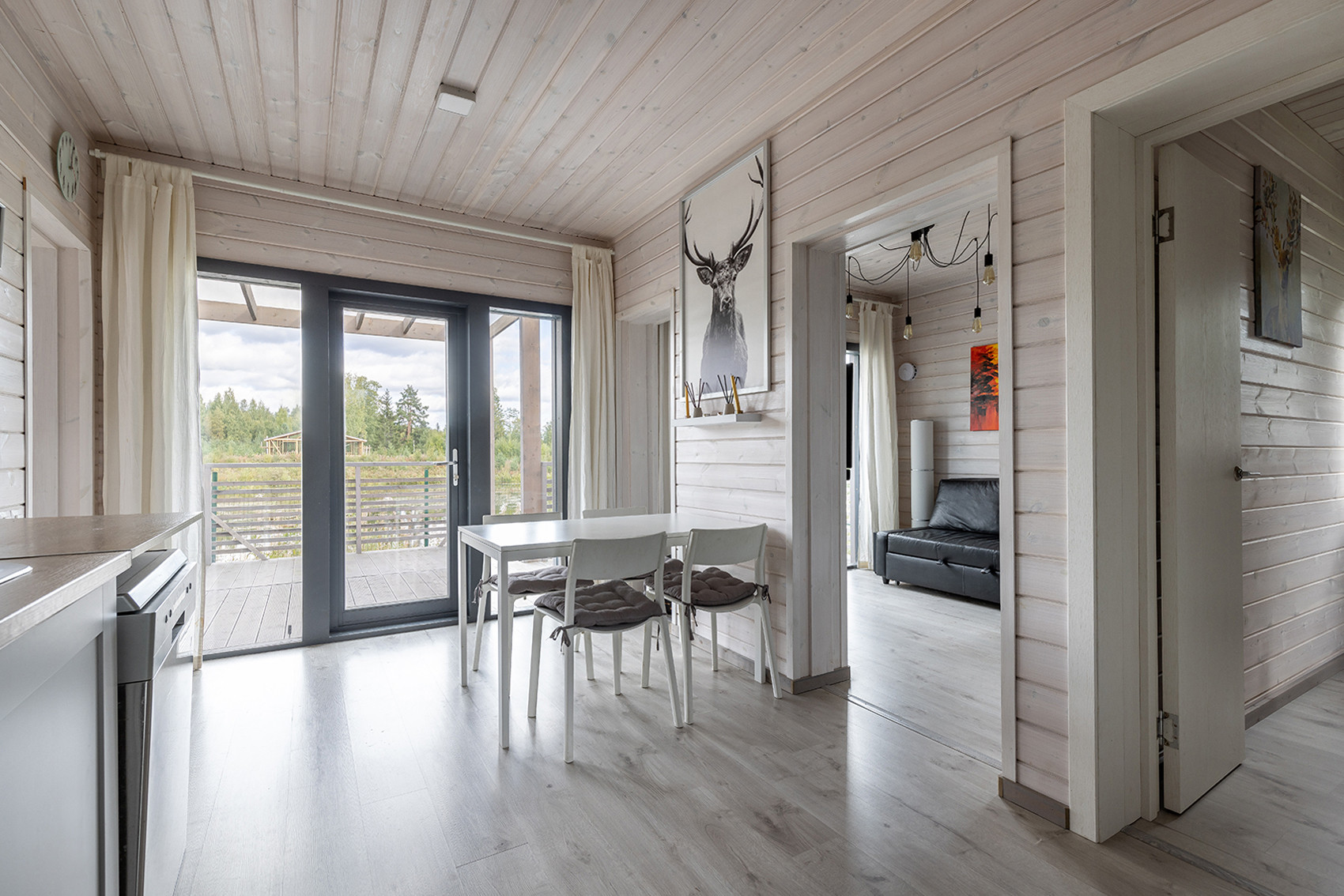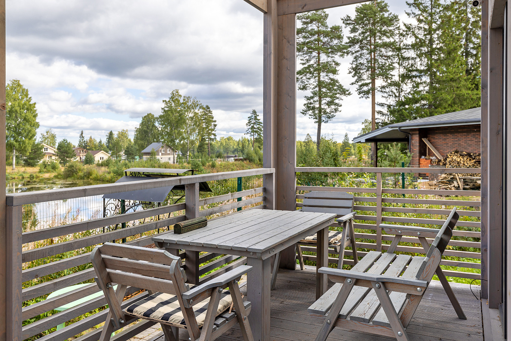 Дом предназначен для постоянного проживания. В идеальном состоянии, с мебелью, техникой, современной инженерией, управляемой удалённо через мобильное приложение. Приезжайте с чемоданчиком и тапочками - живите, наслаждайтесь, для вас всё готово. Вас ждут: две спальни (одна из них с панорамным видом на озеро), современный сан.узел, тёплые полы и электроконвекторы (управление температурой в доме удаленно по WI-FI), приточно-вытяжная вентиляция с рекуперацией, прихожая со встроенными шкафами и кладовой, кухня-гостиная с камином и роскошная терраса с видом на воду. Интернет – оптоволокно. Есть камеры видеонаблюдения.