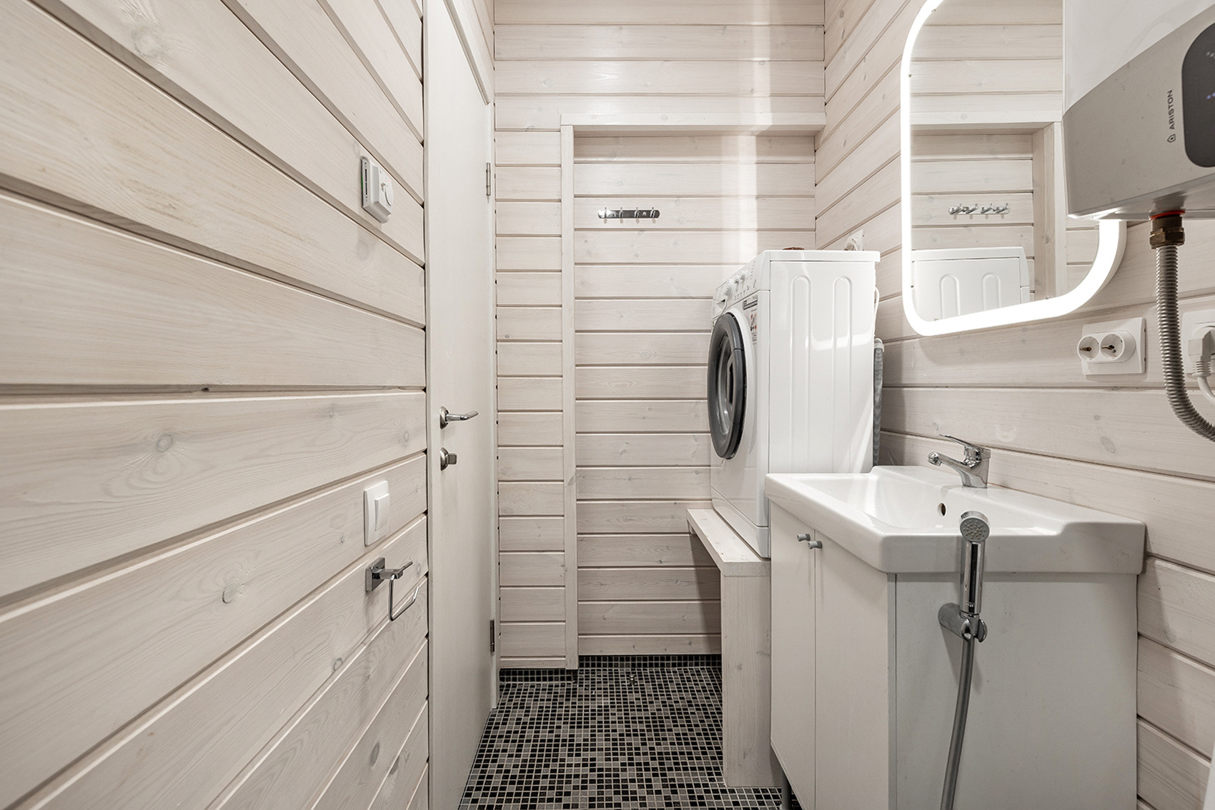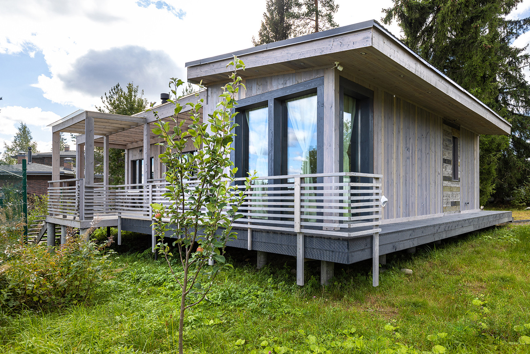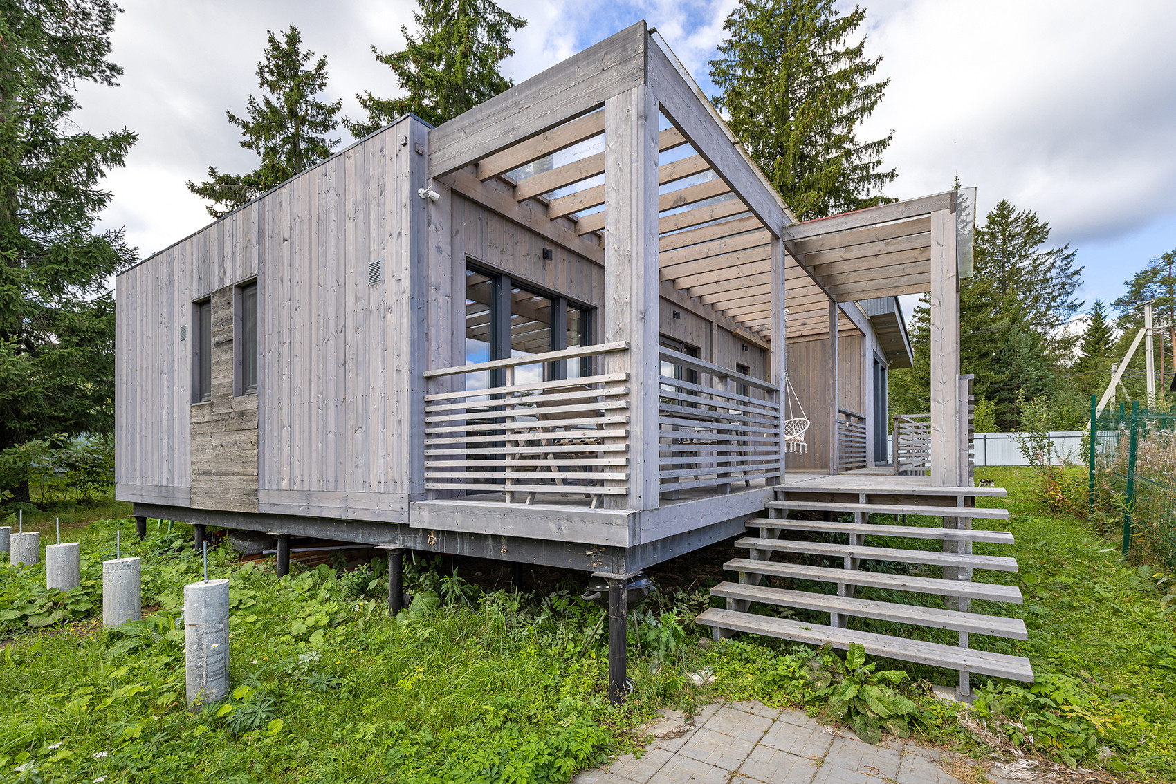 Сам дом изготовлен по технологии PREFAB – произведён по модулям в тёплом цеху на годами отложенном производстве. Очень теплый и энергоэффективный.