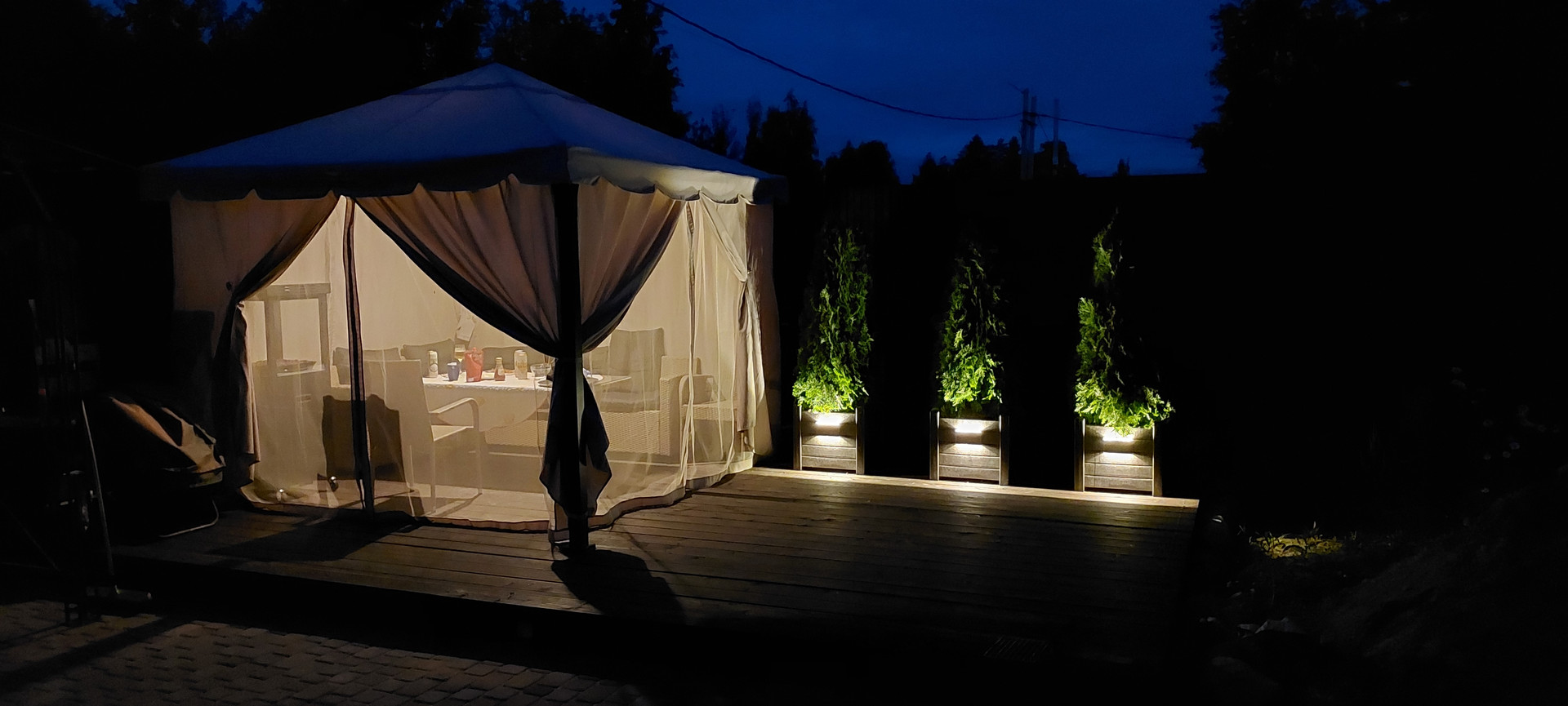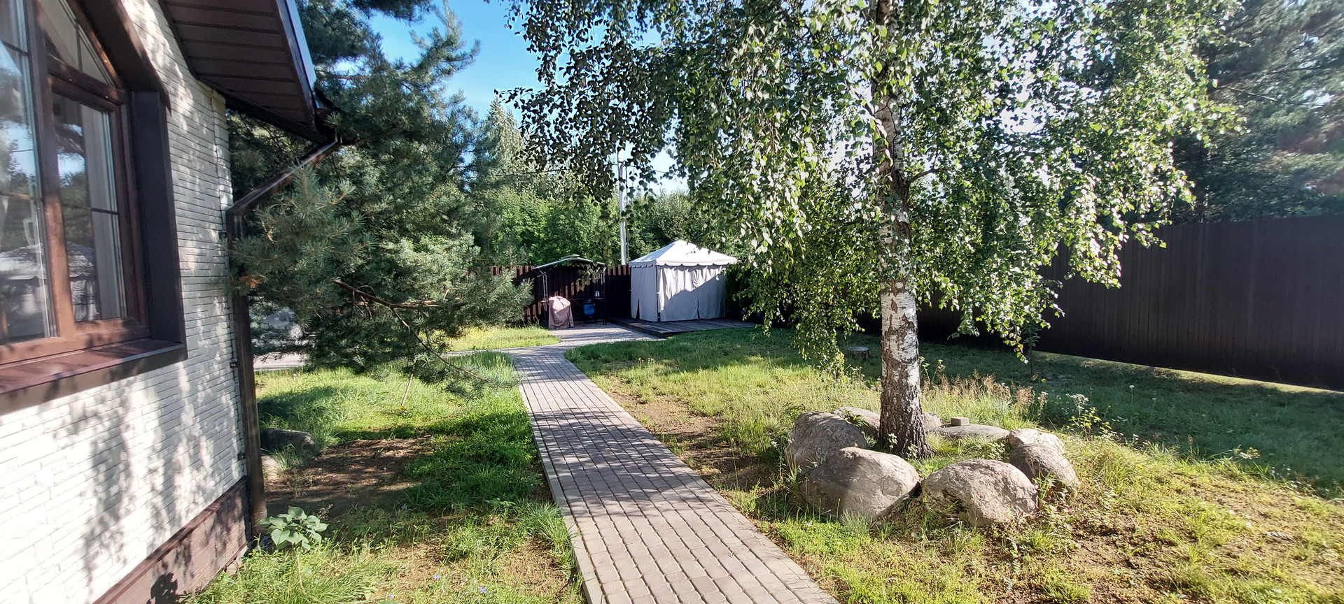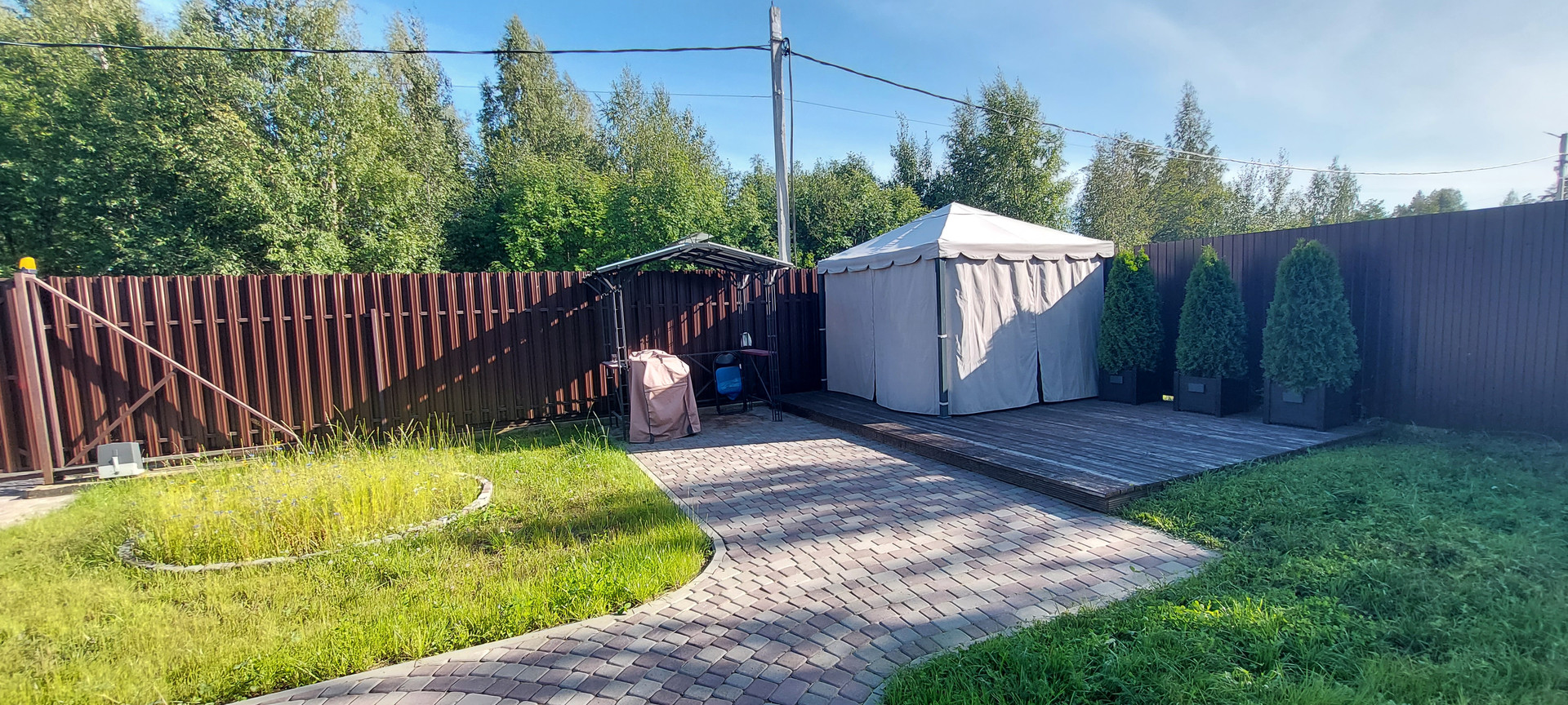- Терраса 6х4 м. с шатром и садовой мебелью.