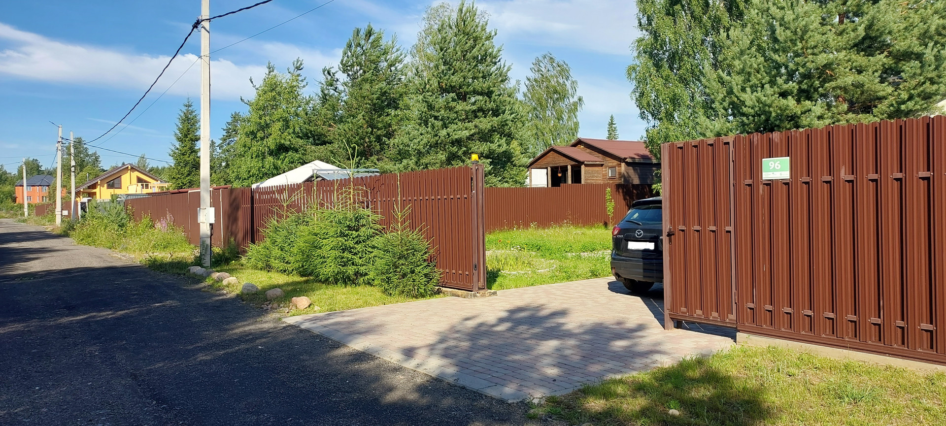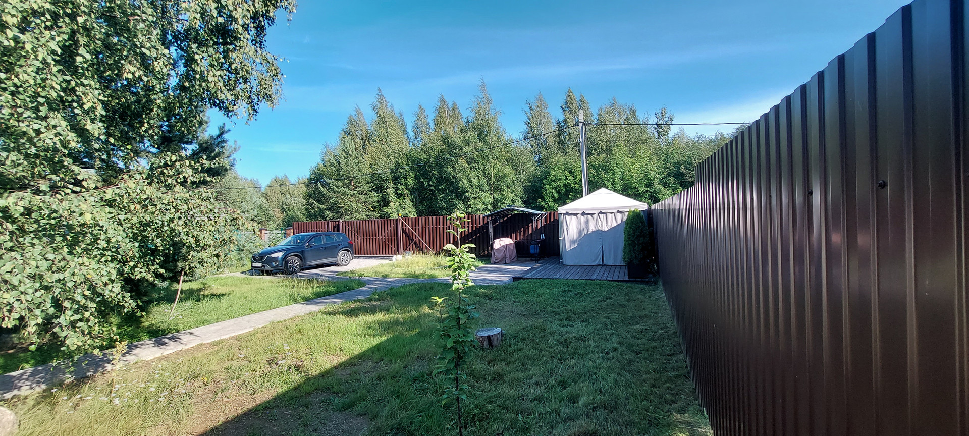 - Забор: металлический штакетник.