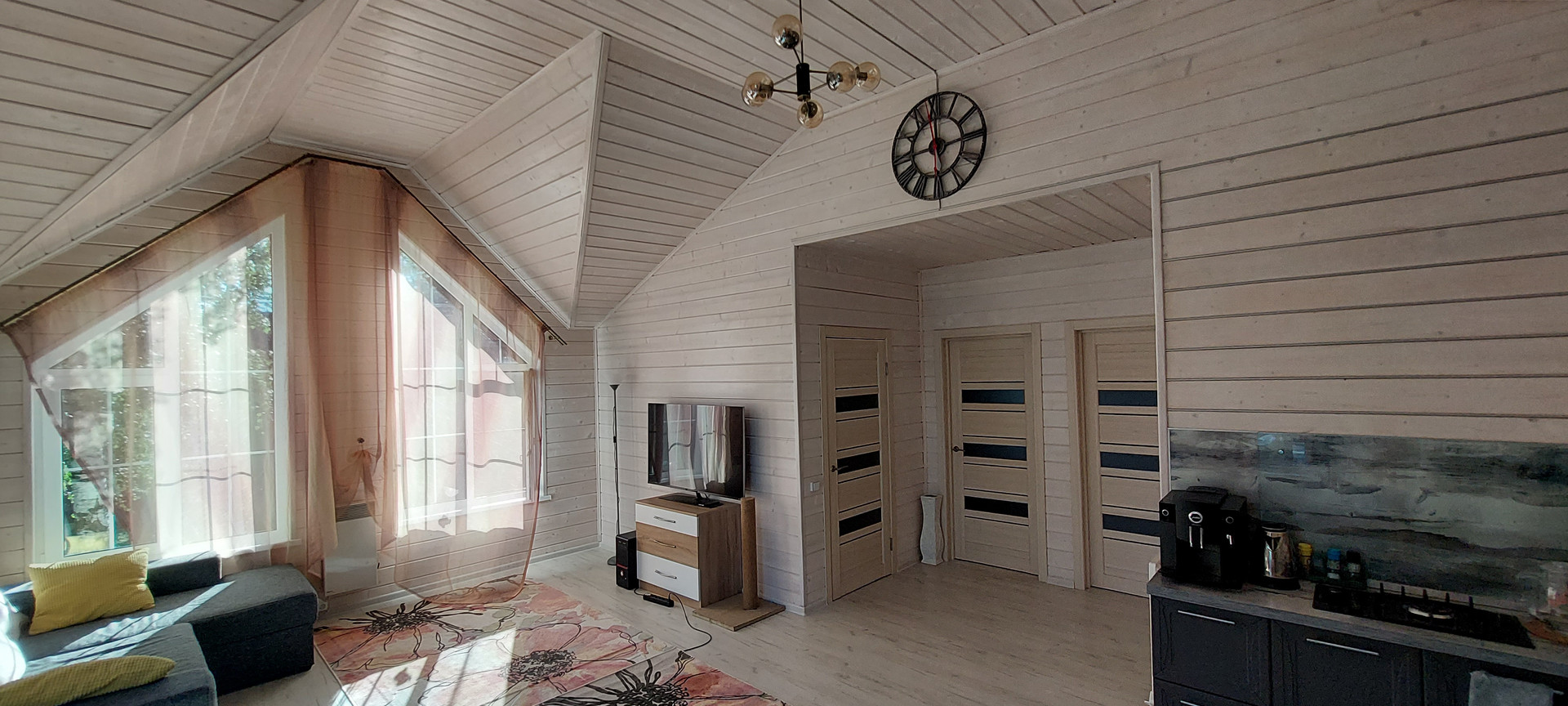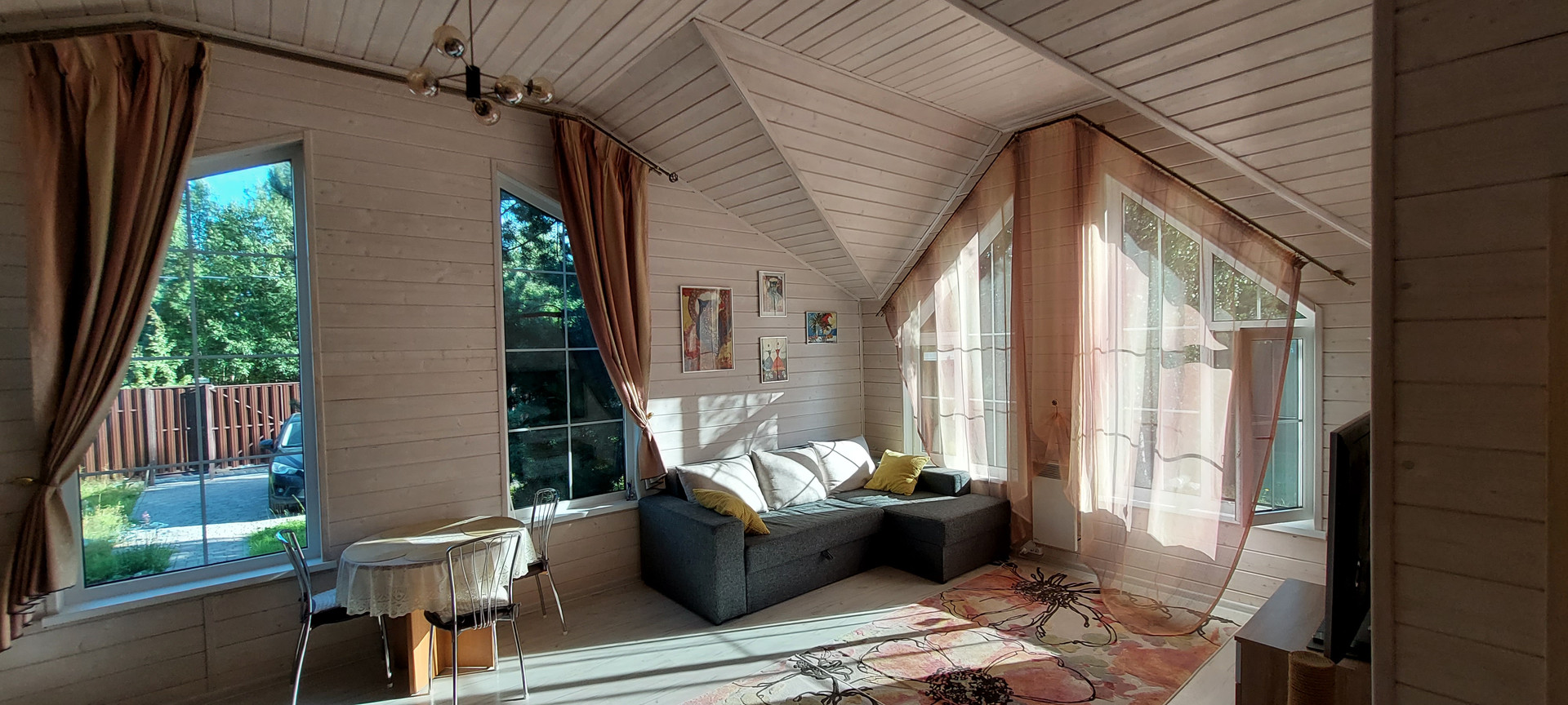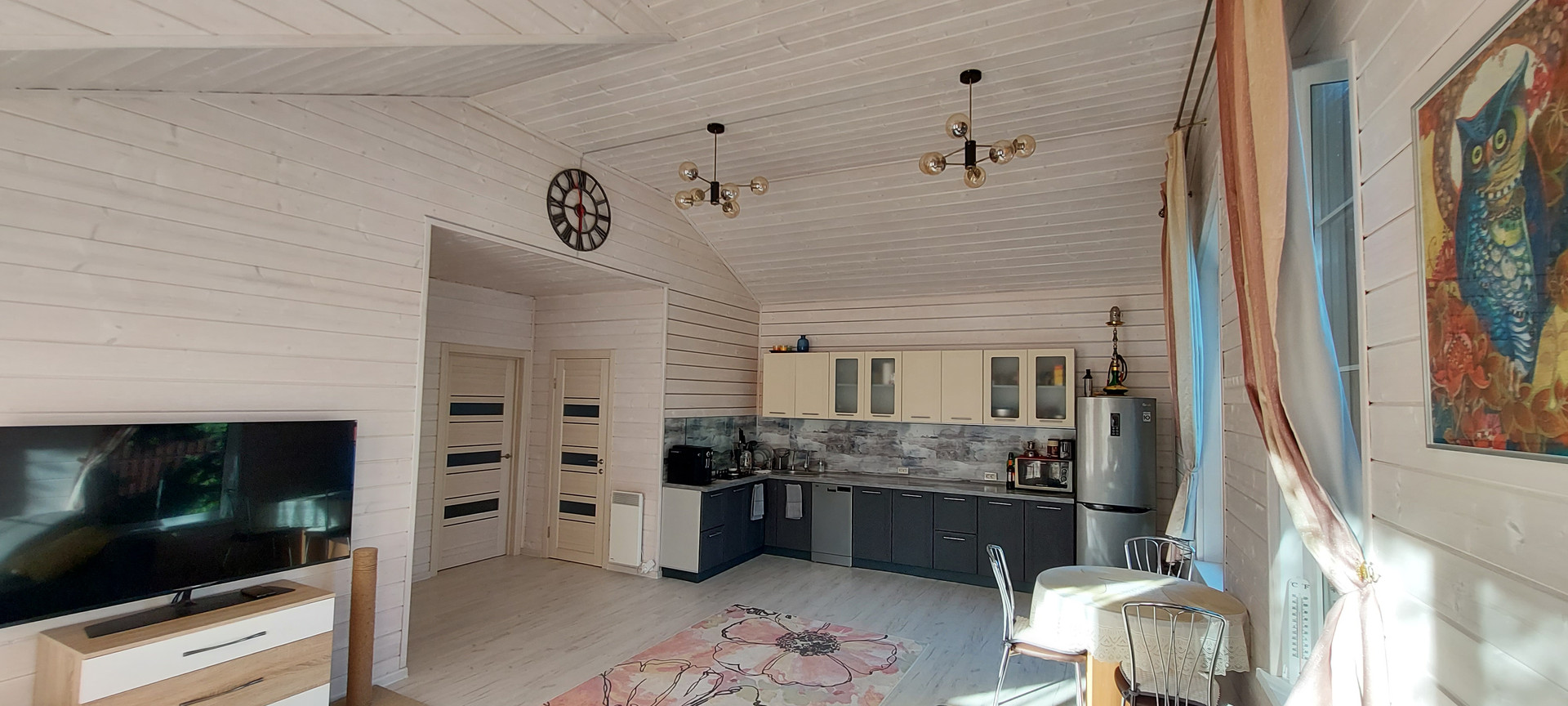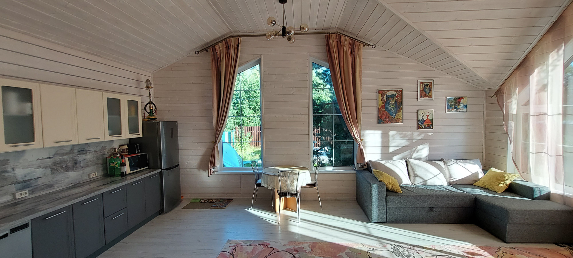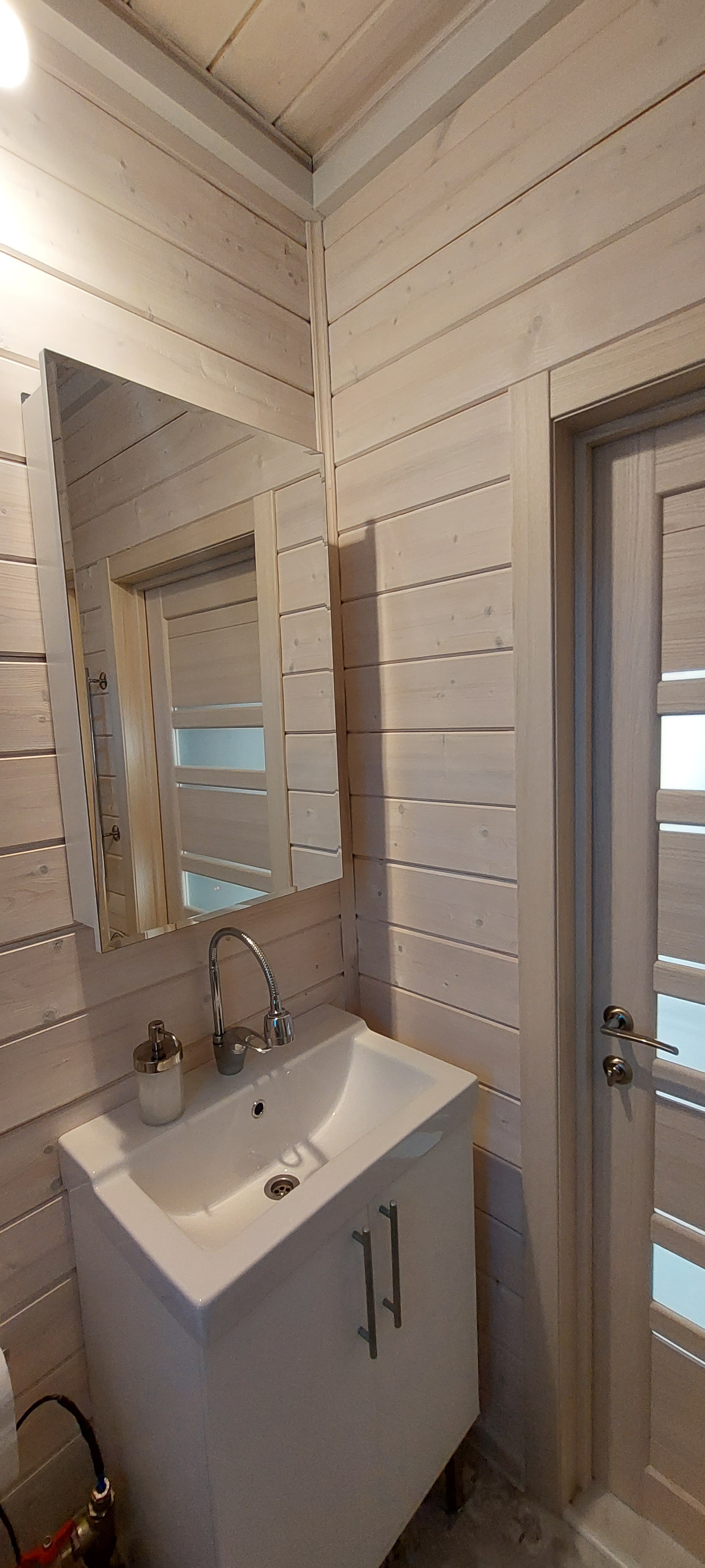 - Дом каркасный, снаружи фасадные панели Деке Навахо, внутри имитация бруса, покрашена краской SATU SAUNASUOJA, ТEKNOS.