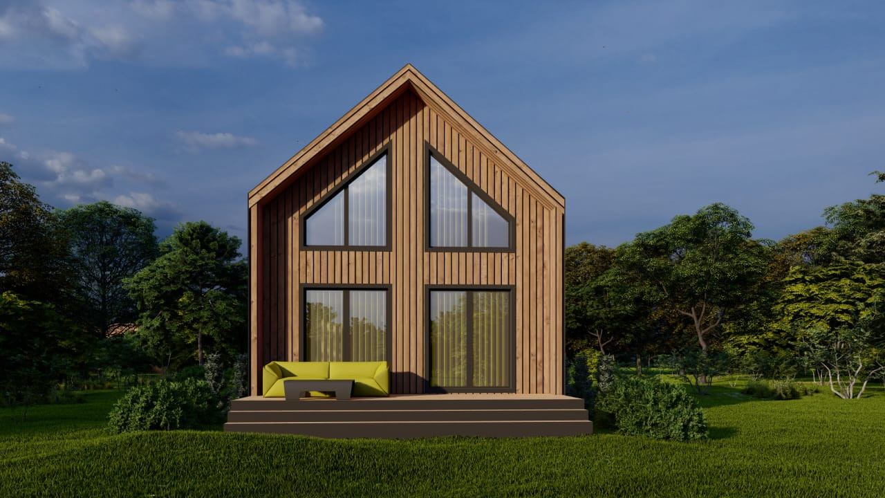 Плюс дома – быстрое возведение, современные технологии и материалы. Большие окна и их количество обеспечивают комфорт и уютную атмосферу внутри дома.