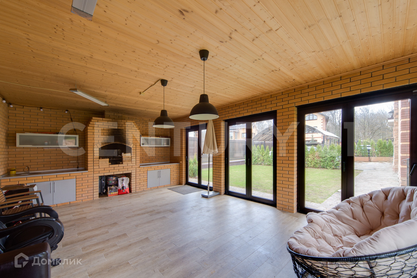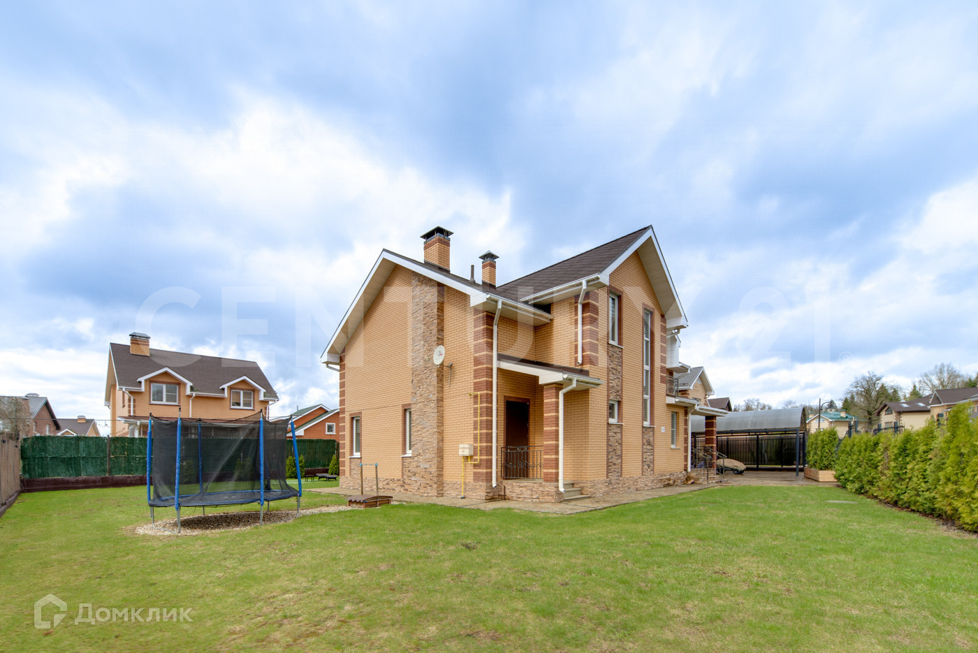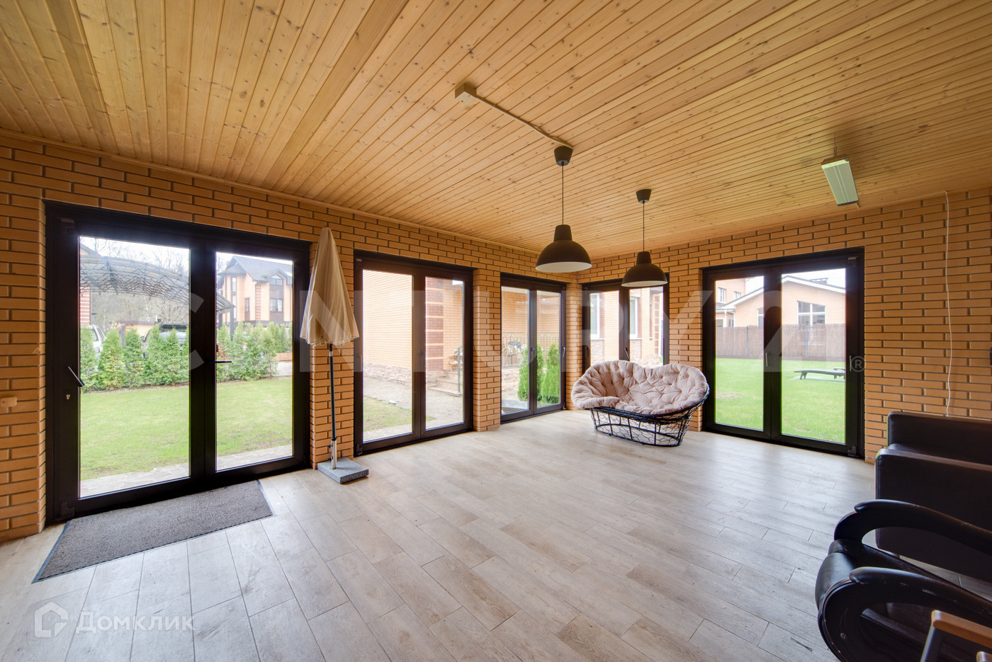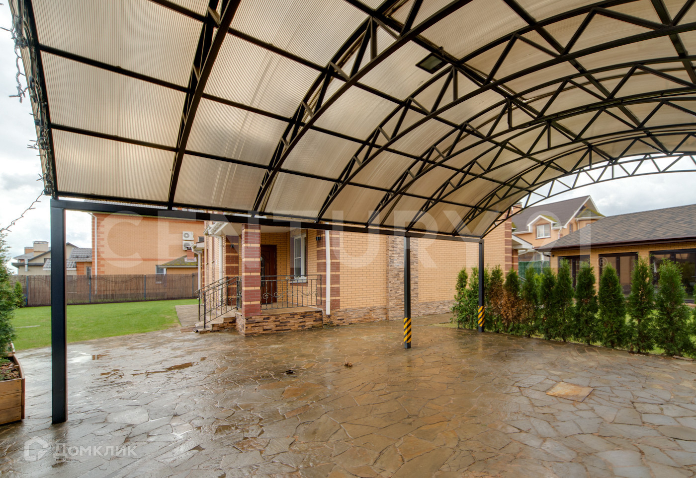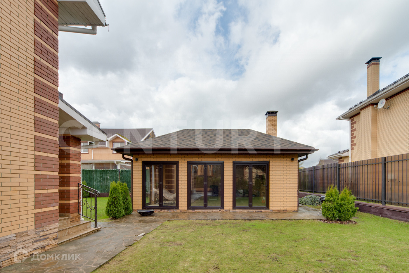 Дом и «патио» выполнены из кирпича. Водоснабжение и канализация – центральные, отопление - двухконтурный газовый котел, электричество – 16 кВт.