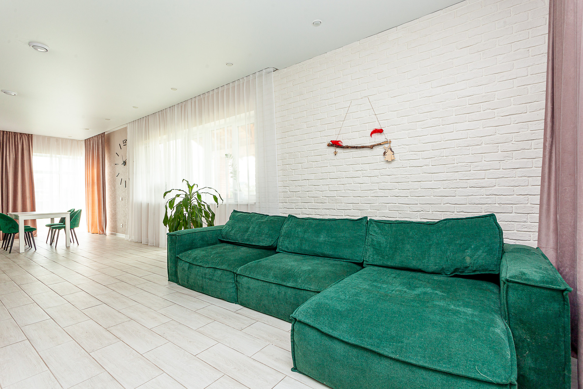 Дом построили для себя 6 лет назад. Планировка и метраж продумывались с учетом жизни большой семьи. В доме предусмотрена кладовка, гардеробная, второй сан. узел. Все помещения имеют большой метраж с запасом на дополнительную мебель, если потребуется: кухня-гостиная 49 метров, 5 просторных спален (три по 20 квадратных метров и 2 по 17 кв. м. ), два входа (с террасы и центральный). Кроме того в с/у на первом этаже предусмотрена сауна, но пока не оборудована.