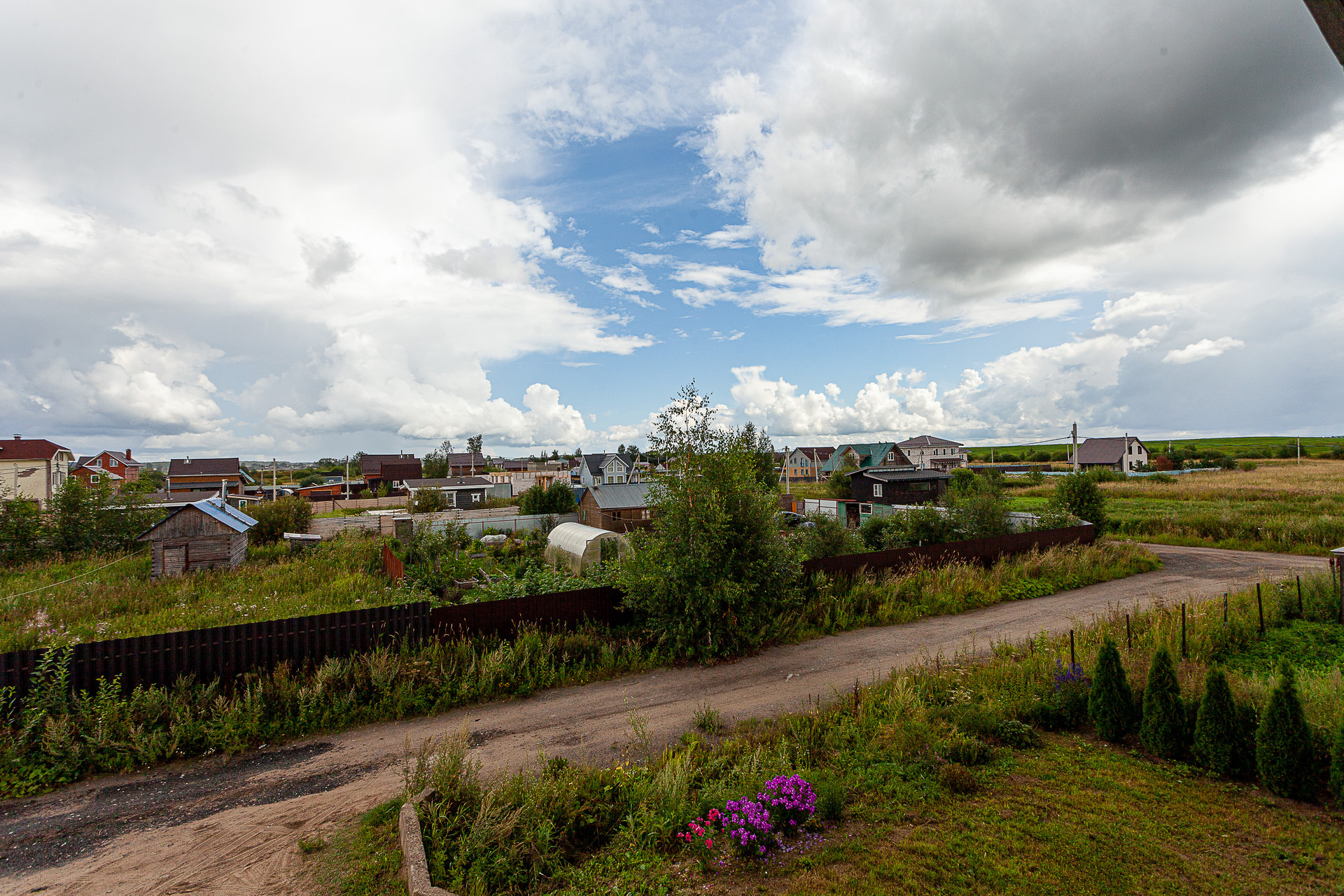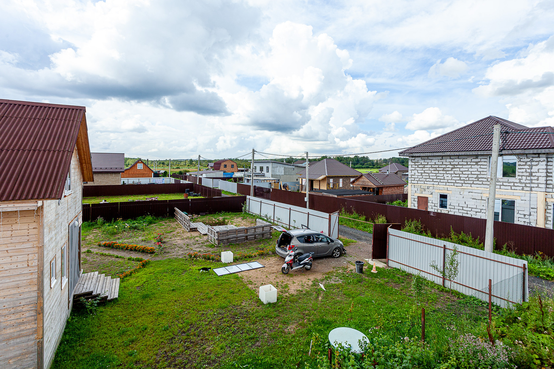 Поселок маленький, соседей немного, вокруг поля. Территория полностью закрыта.