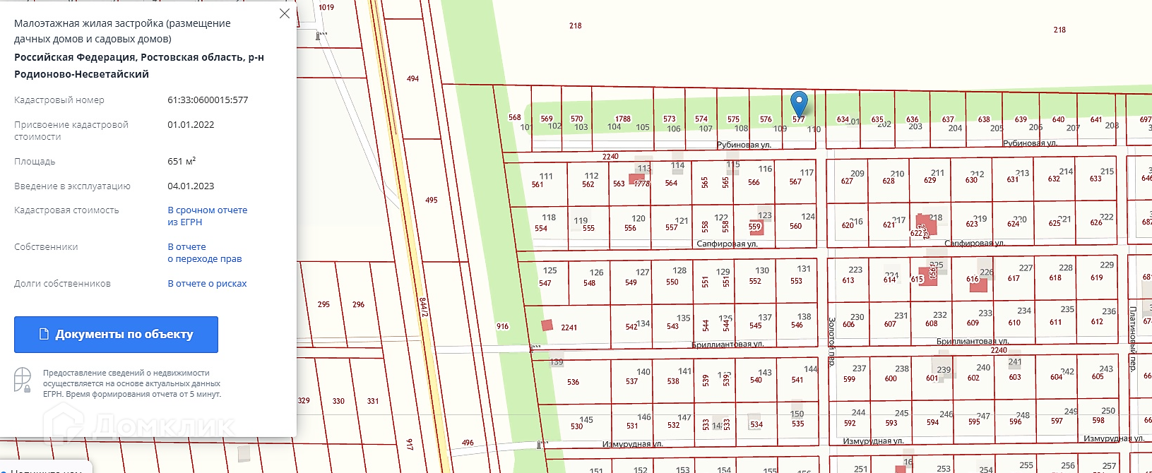 Документы полностью готовы, присвоены кадастровые номера, улицы, земля ИЖС , узаконено по документам разделение участков. Поселок охраняемый , на улице уже строят дома. Ширина дороги между улицами 8м.