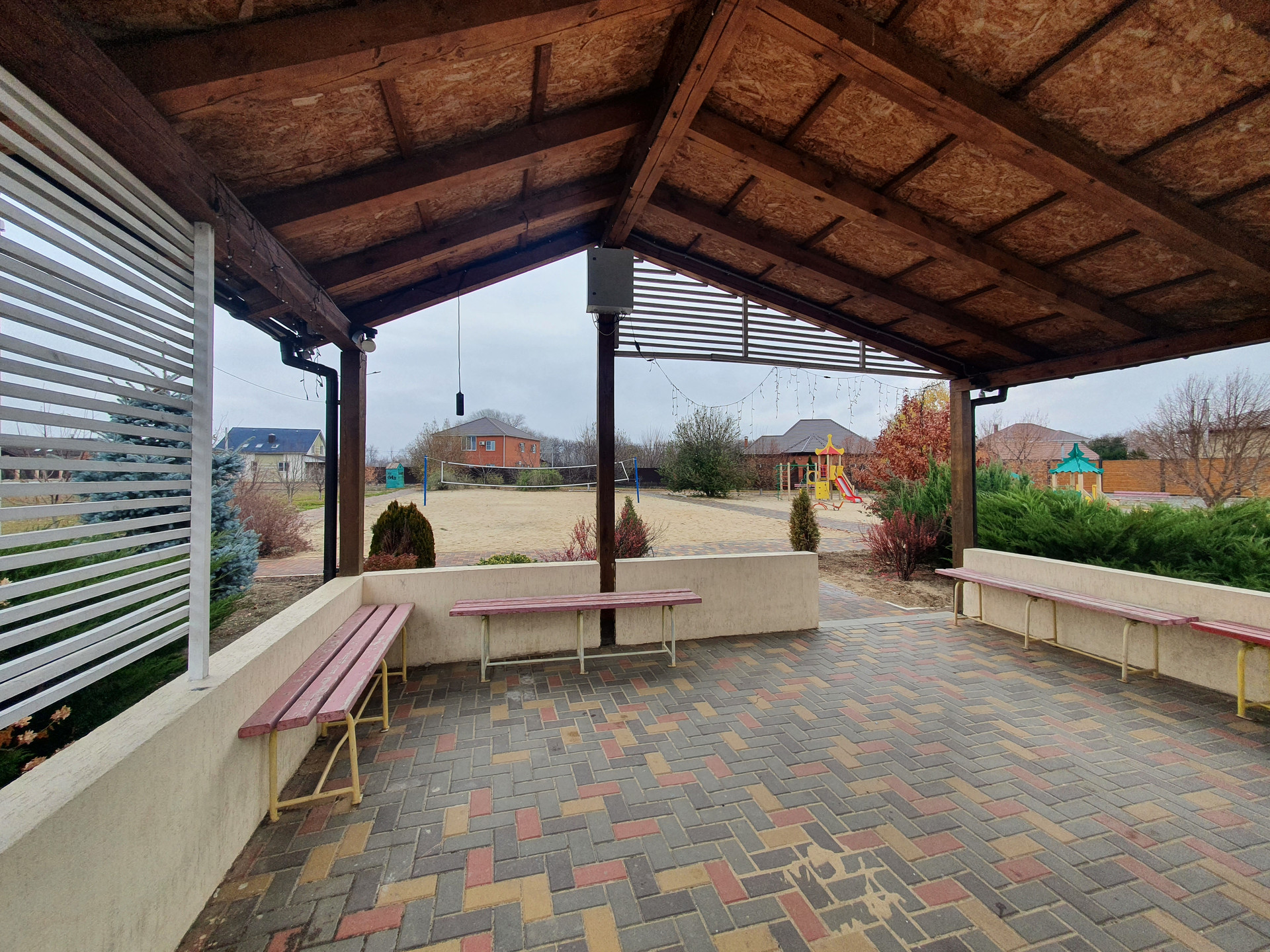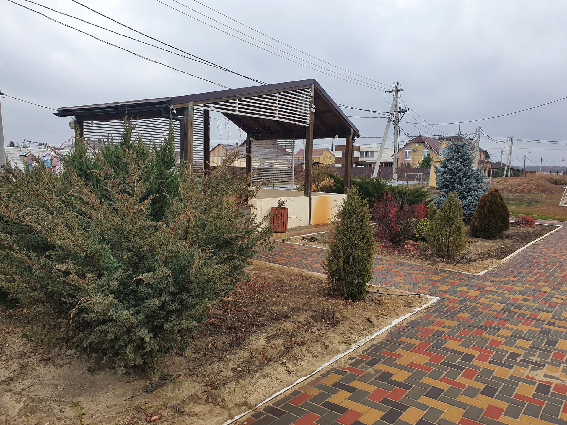 Коммуникации - электричество, внутриквартальное освещение, вода, асфальтированная подъездная дорога, ограждение по периметру поселка, круглосуточная охрана (въезд осуществляется по пропускам), газ, детская площадка, волейбольная площадка, футбольная площадка, беседка (зона барбекю).
