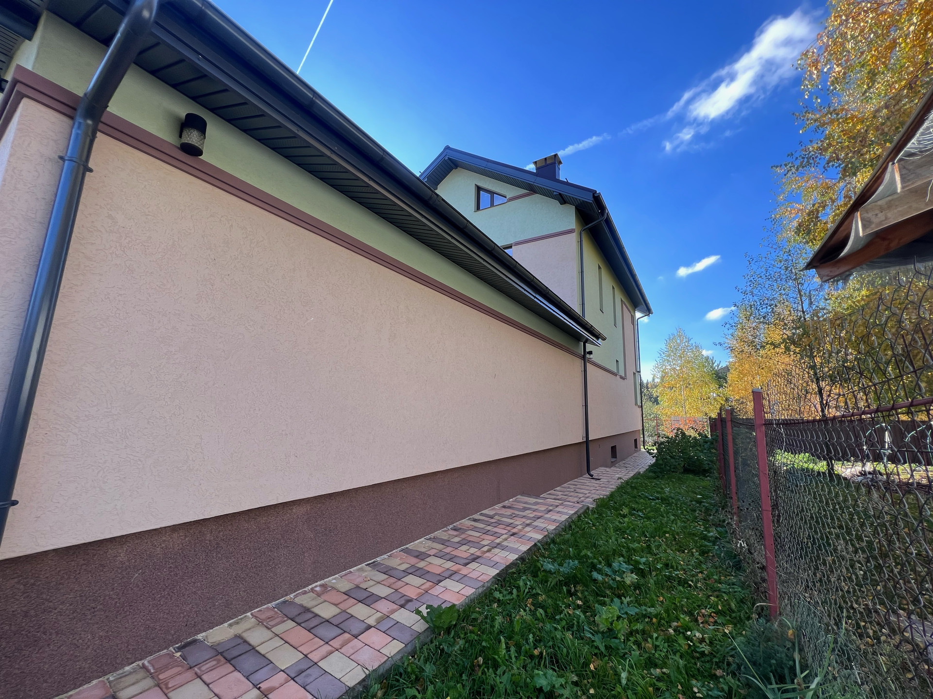 На участке навес на 6 автомобилей, откатные ворота с итальянской автоматикой Came, дорожки из брусчатки, на всем участке имеется автоматический полив, высажены плодовые/ягодные деревья, кустарники.