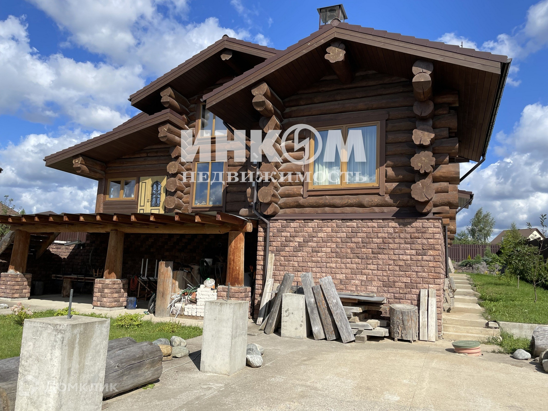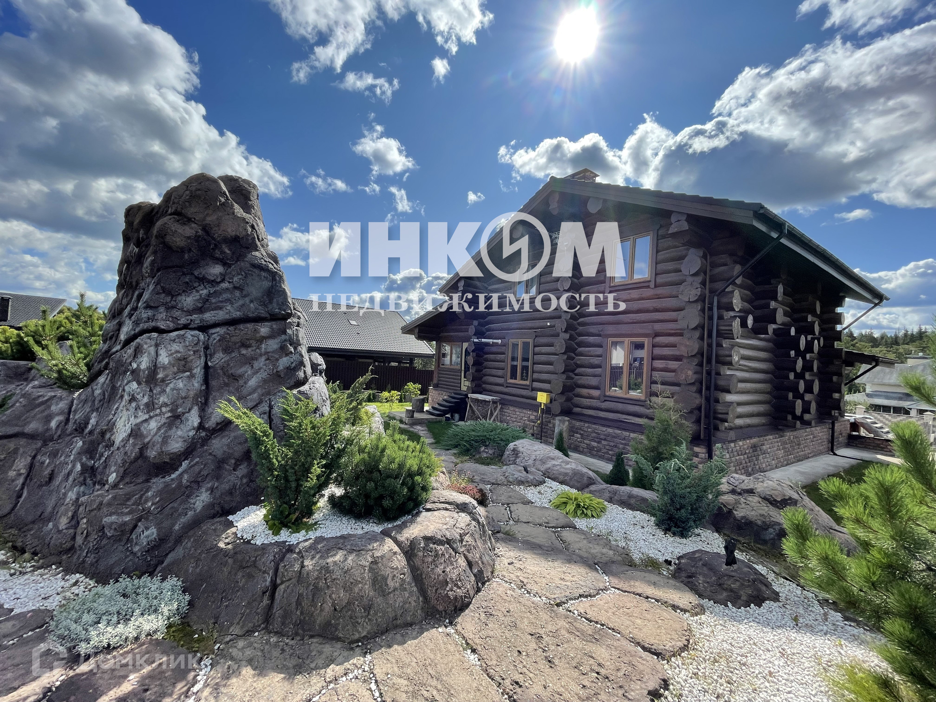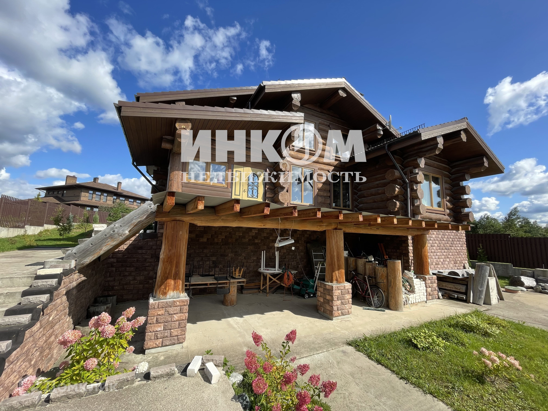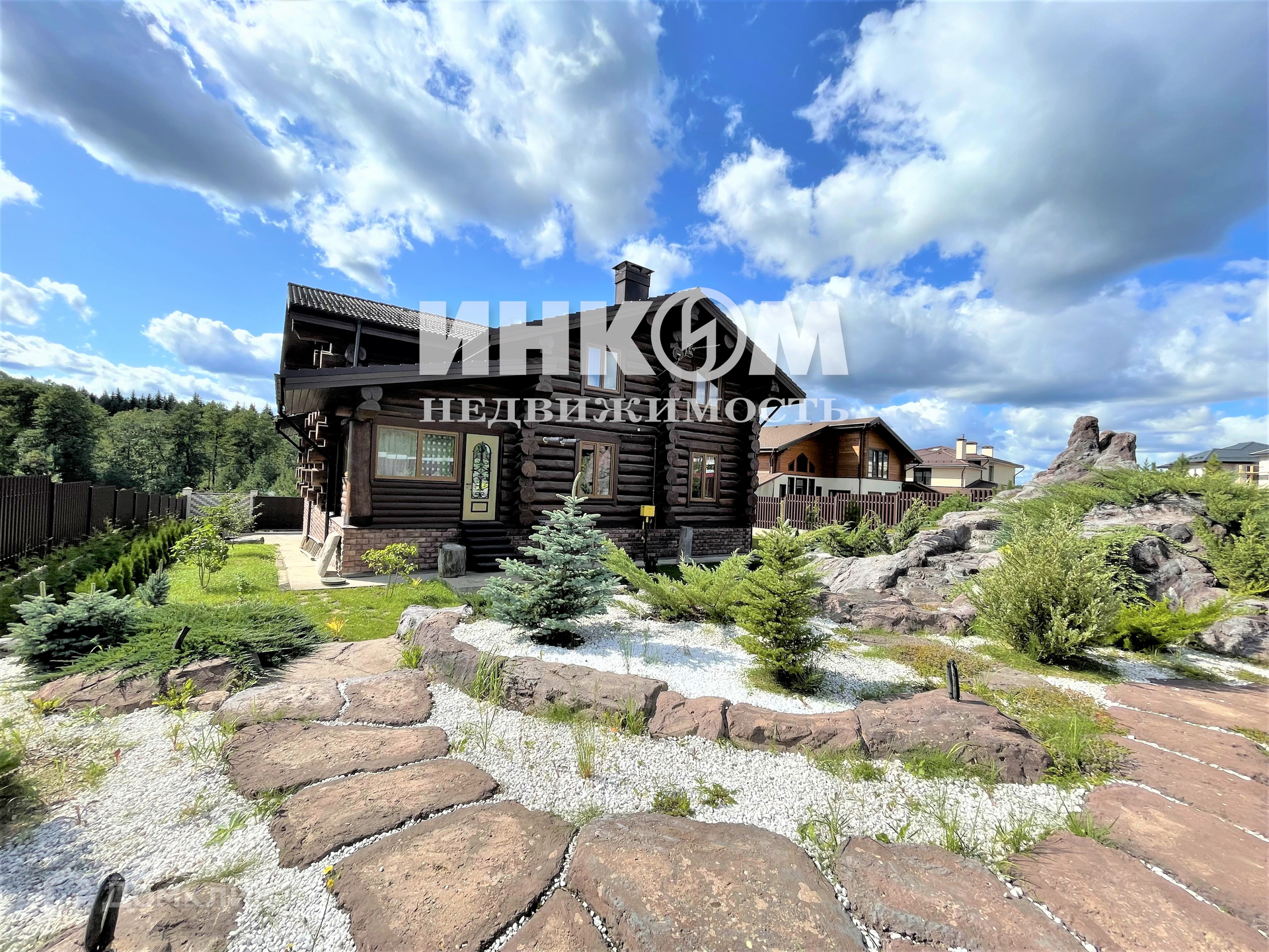 Эксклюзивный коттедж из массивного бревна канадской рубки на террасированном участке с альпийским ландшафтом в организованном коттеджном поселке со всеми центральными коммуникациями "Цветочный".