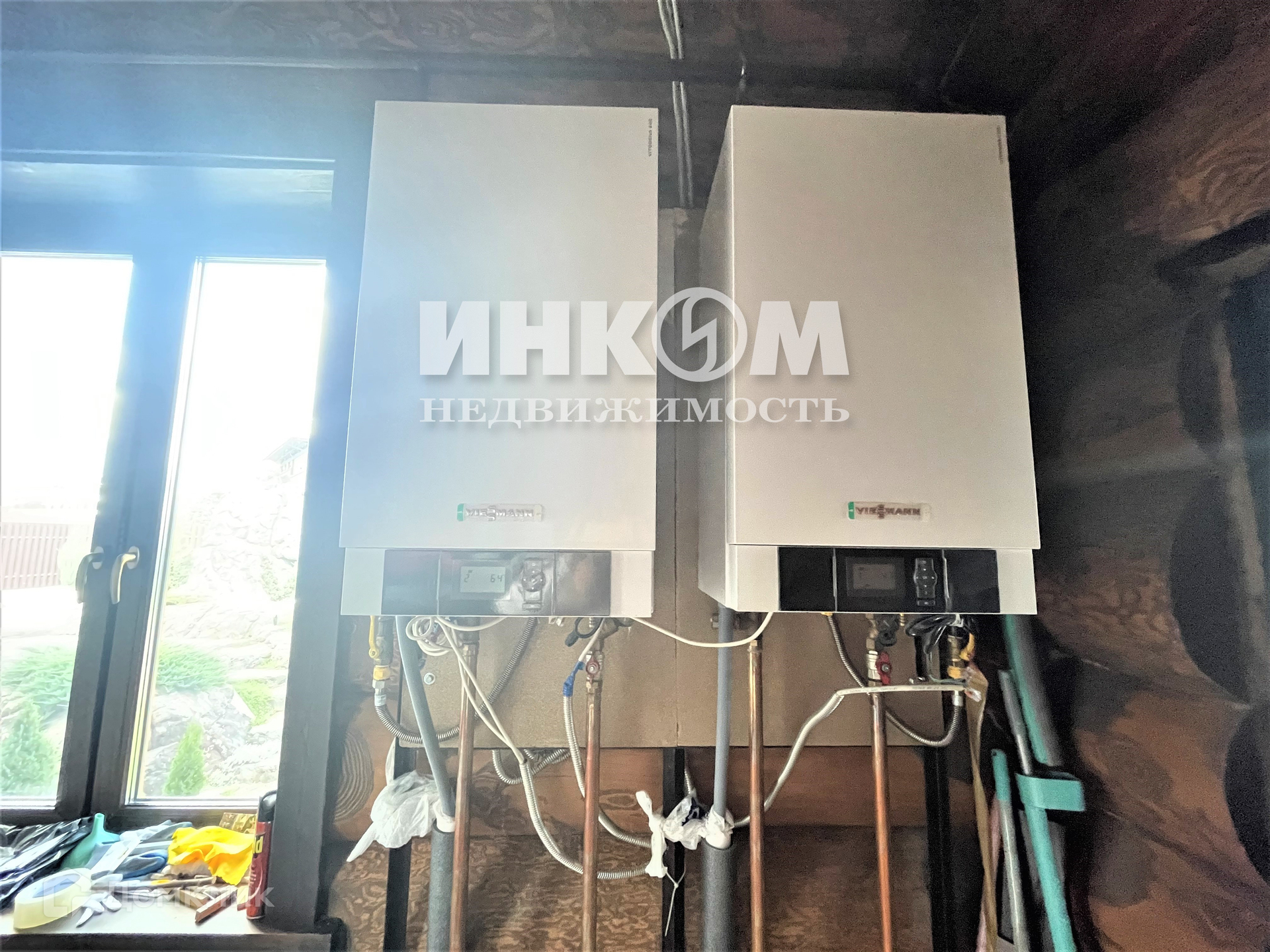 Отопление газовое мощ. 70 квт, разведено по всему дому. Немецкие радиаторы Zehnder Charleston. Два газовых конденсационных котла Viessmann Vitodens 200- W мощностью по 35 квт каждый, одноконтурные в каскаде. Энергоэффективные и экономичные. Водонагреватель объемом 300л. Электричество трехфазное 16 квт по всему дому.