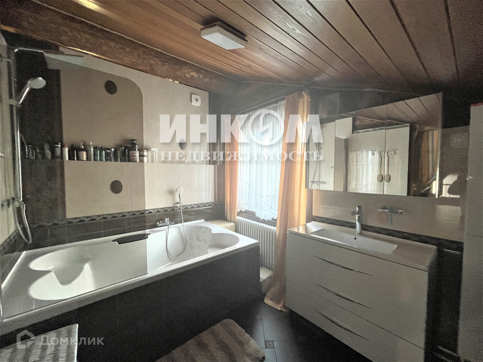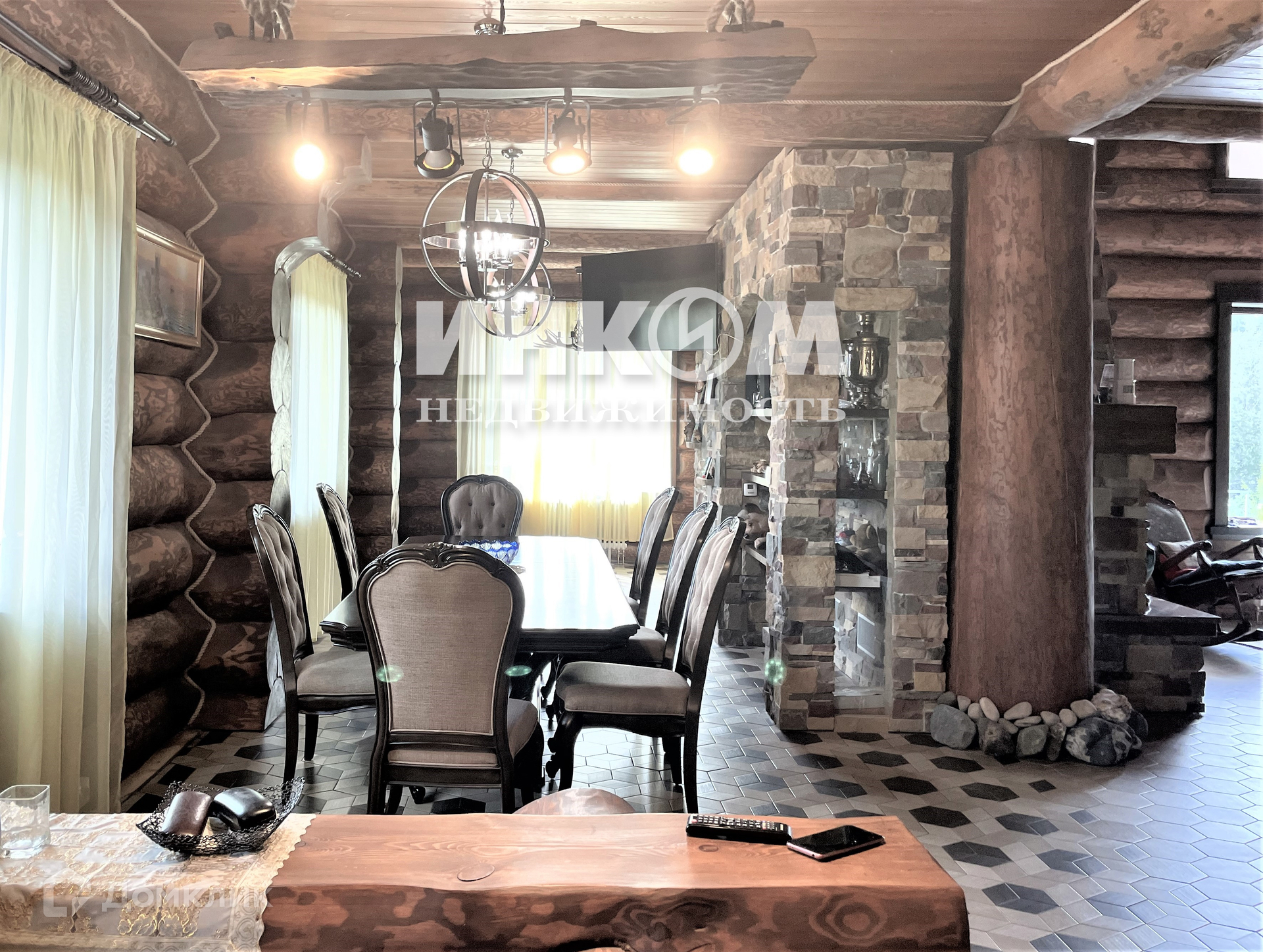 На 1м этаже: прихожая 15 кв.м. В большой гостиной камин с керамическим дымоходом Schiedel UNI, выполненный по эксклюзивному проекту, дизайнерский водопад с нишами под холодильник и кладовую. Второй свет с высотой потолка 7 м. Столовая зона с мебелью из натурального дерева. Кухонный гарнитур из массива дерева (на финальной стадии установки) с встроенной техникой фирмы премиум-класса NEFF. Спальня и с/у под чистовую отделку. Теплый водяной пол фирмы ТЕСЕ. Высота потолков 3 м.