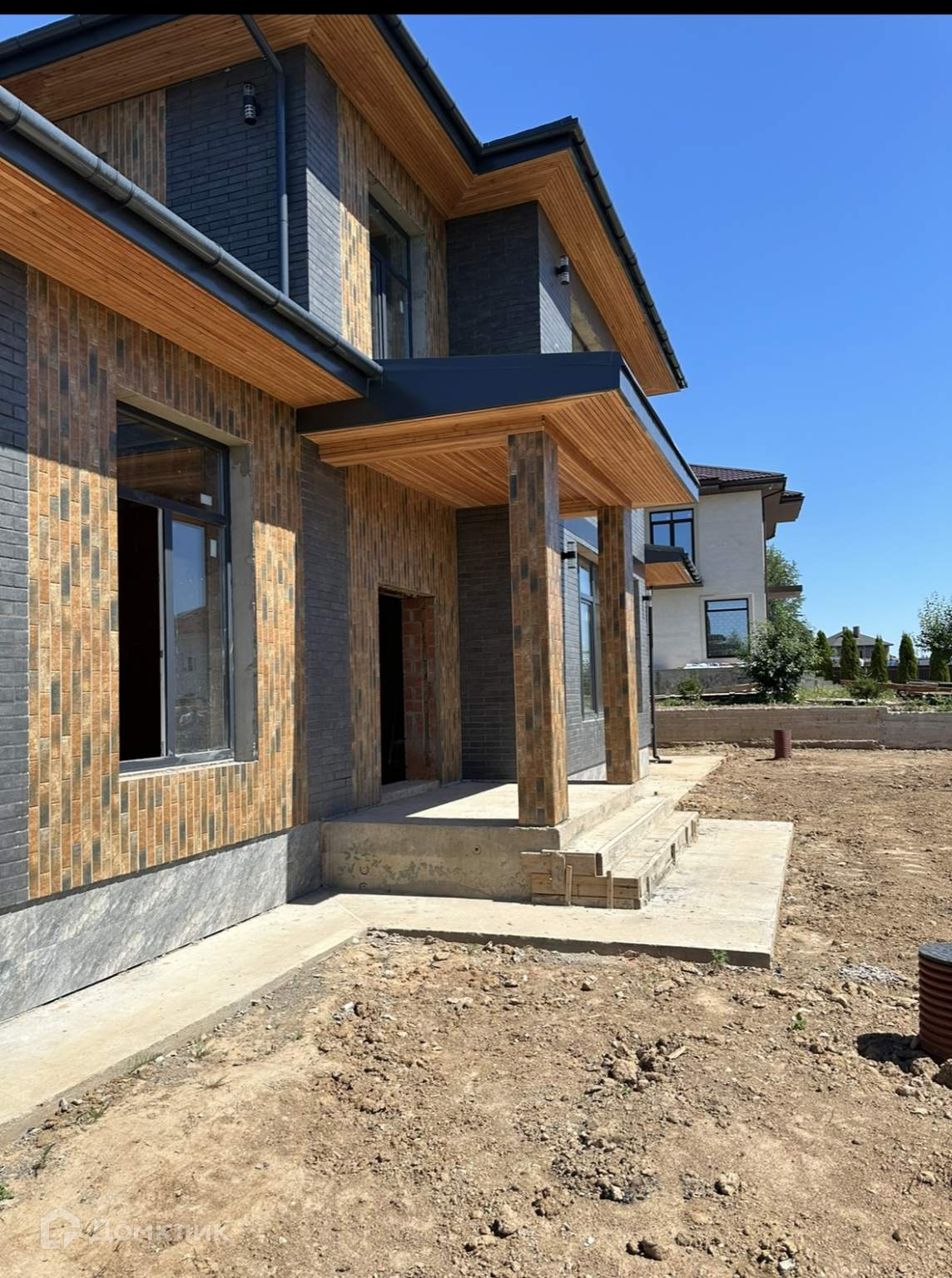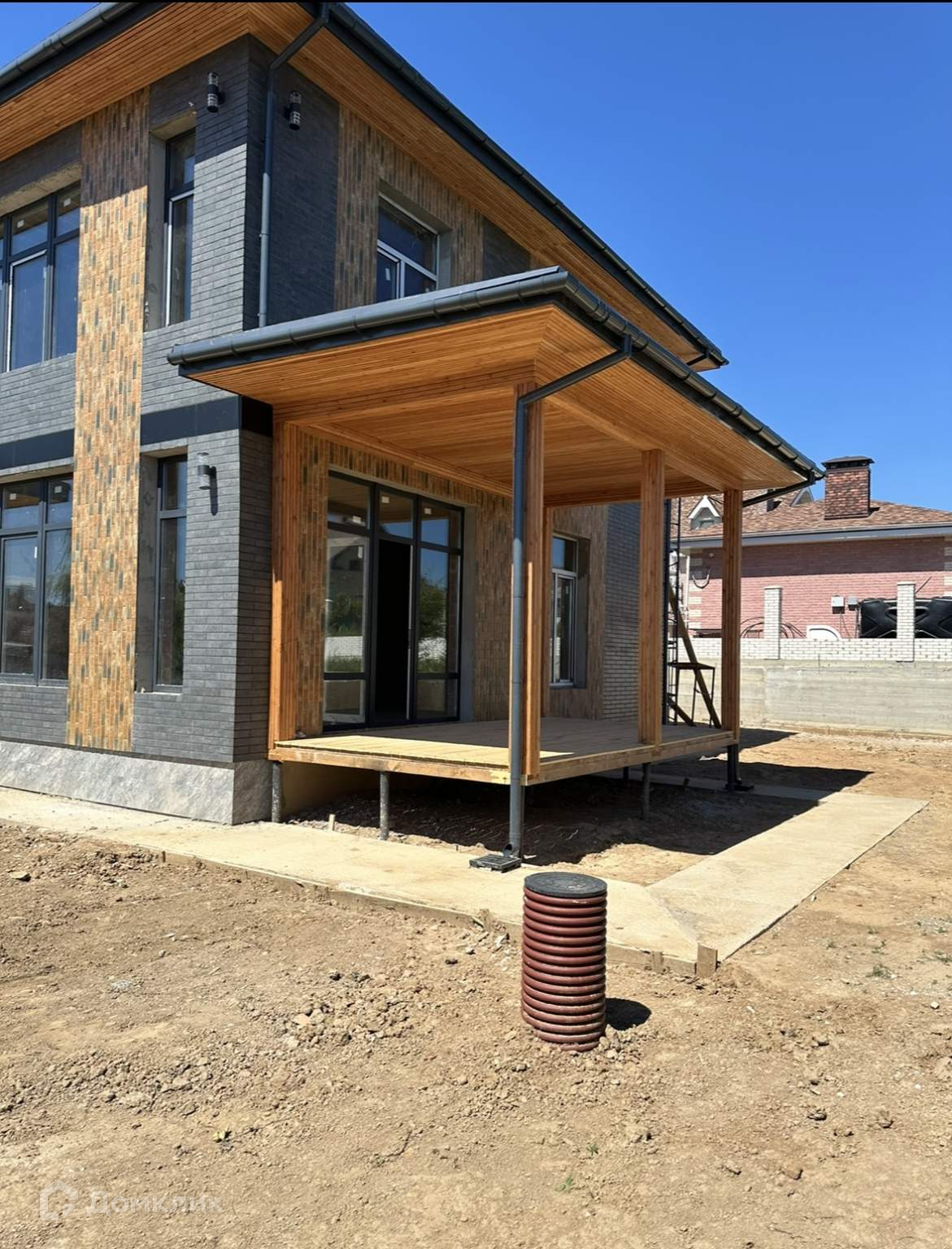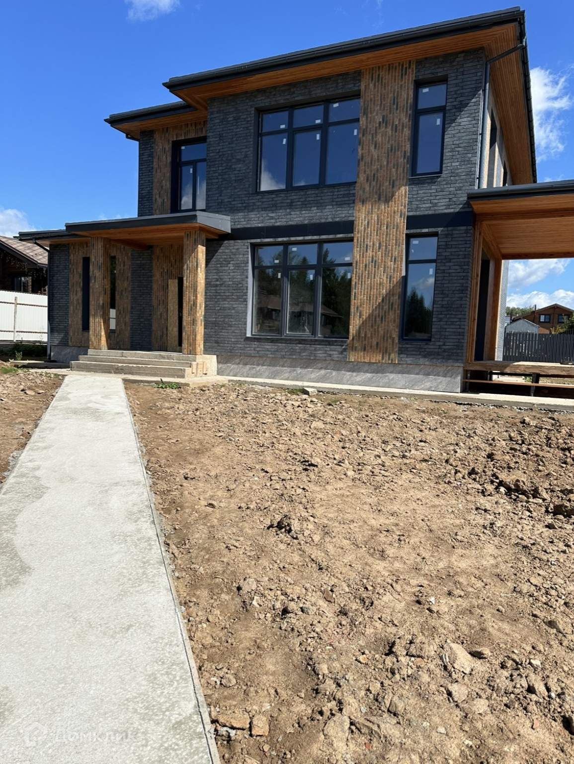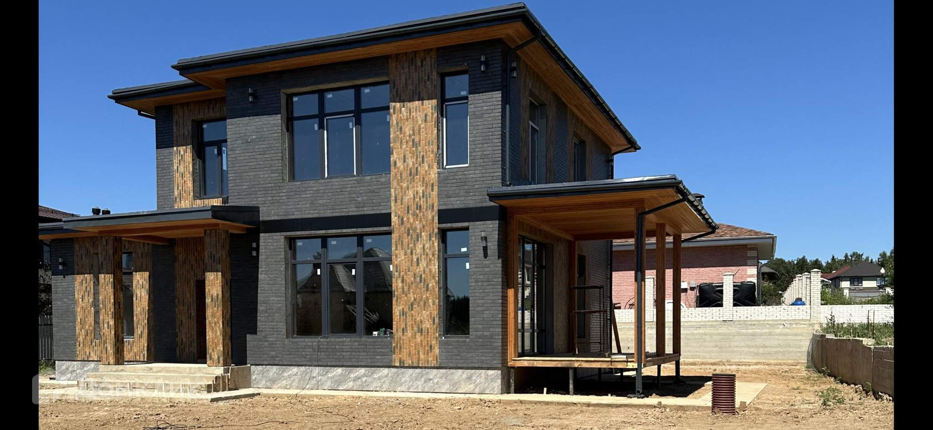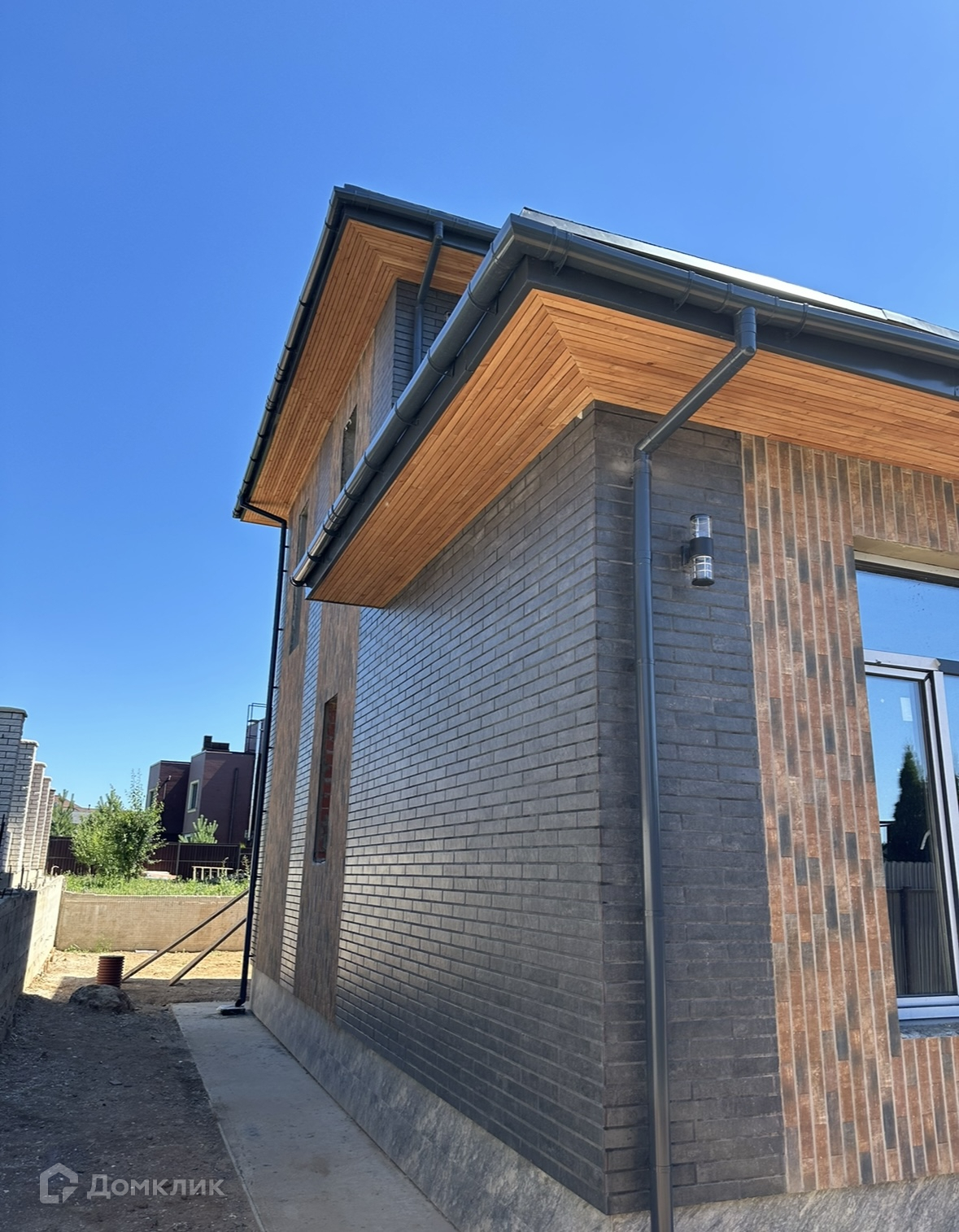 Фасад дома сделан из клинкерной плитки .