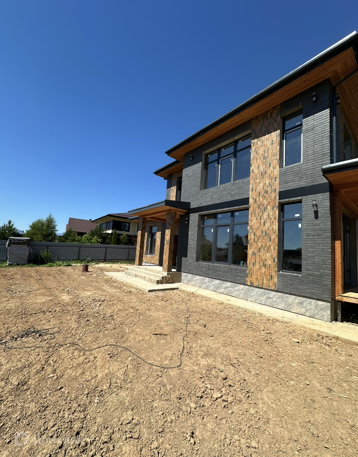 Установлен забор и автоматические ворота , площадка для машины .