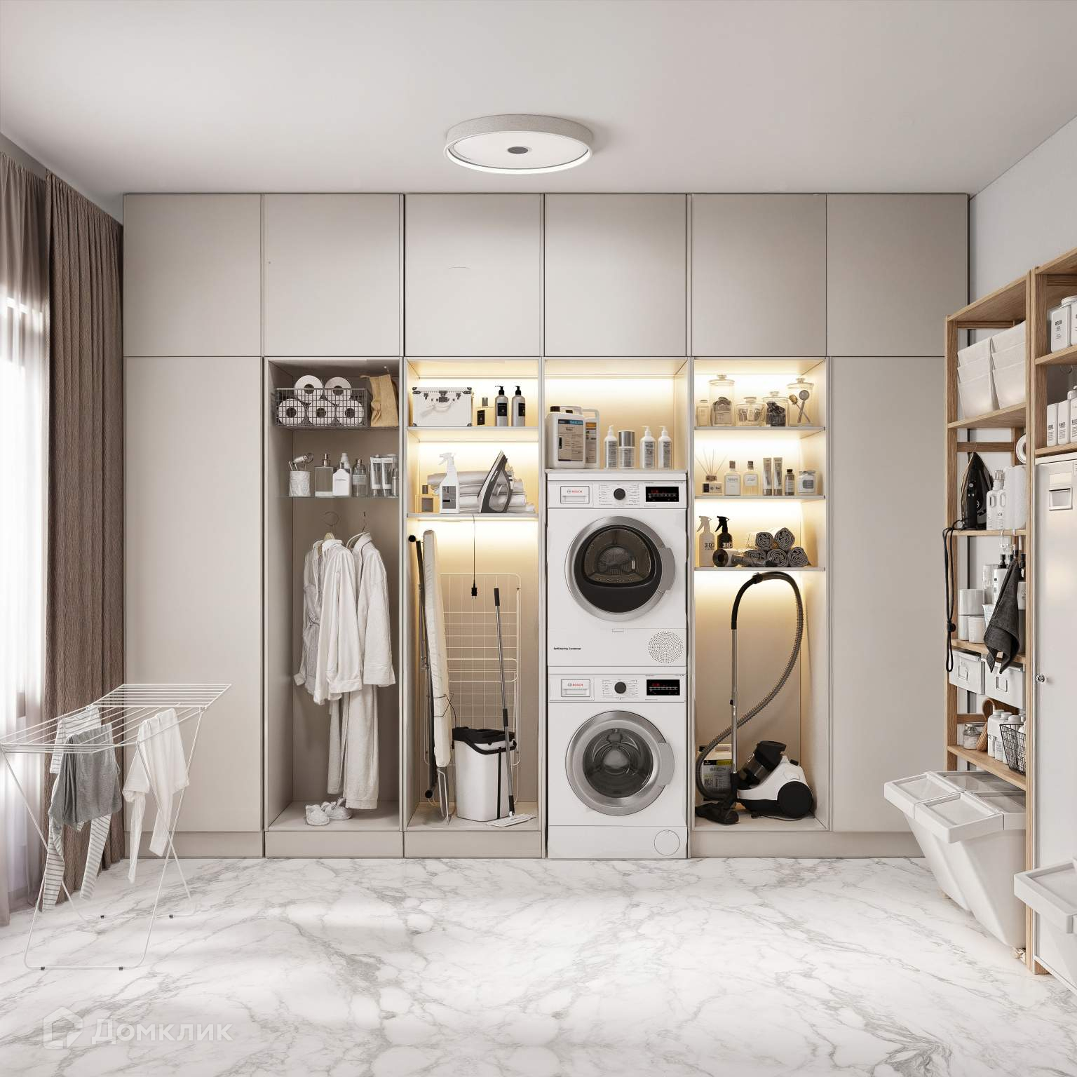 1 эт. 152 м2 : Прихожая -гардеробная, котельная, прачечная, кухня, столовая, гостиная , кабинет