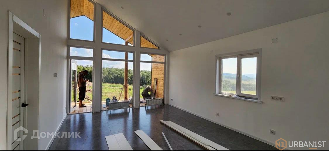 Предлагаю Вашему вниманию современный дом в пригороде Красноярска с чистовой отделкой от застройщика, натяжные потолки, теплый пол, установленное освещение, выключатели и розетки, а также системой водоотведения и панорамным остеклением.