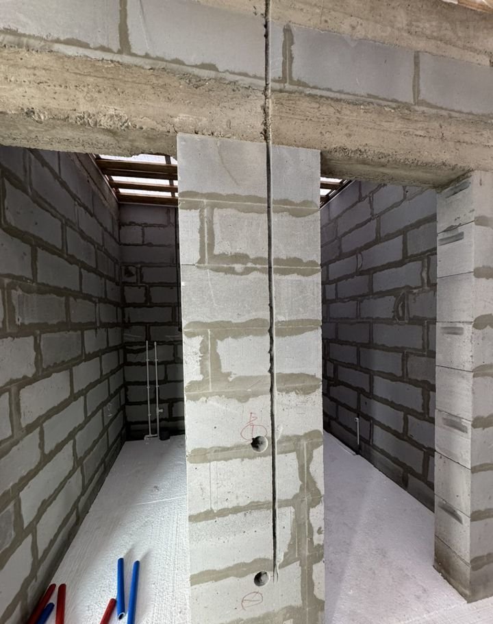 Дом построен на надежной монолитной плите со  свайно-ростверковом фундаменте и подключен к центральному водоснабжению и трехфазному электричеству 15кВт.