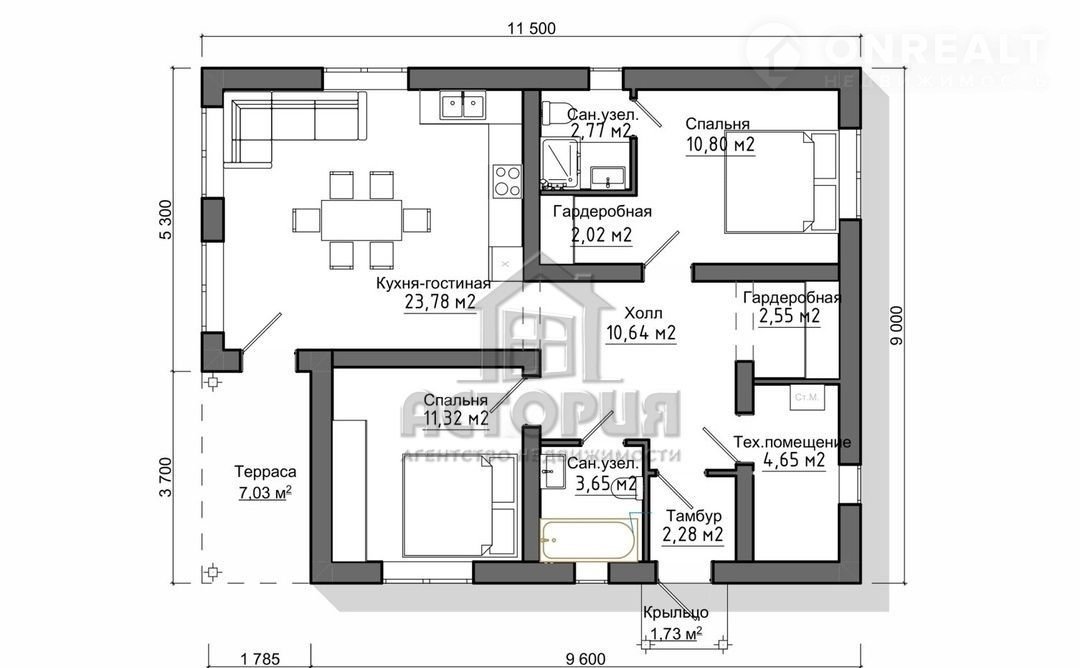 Общая площадь 104 м2