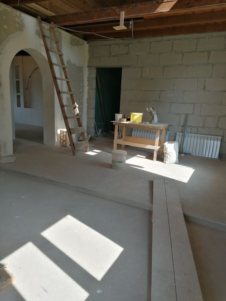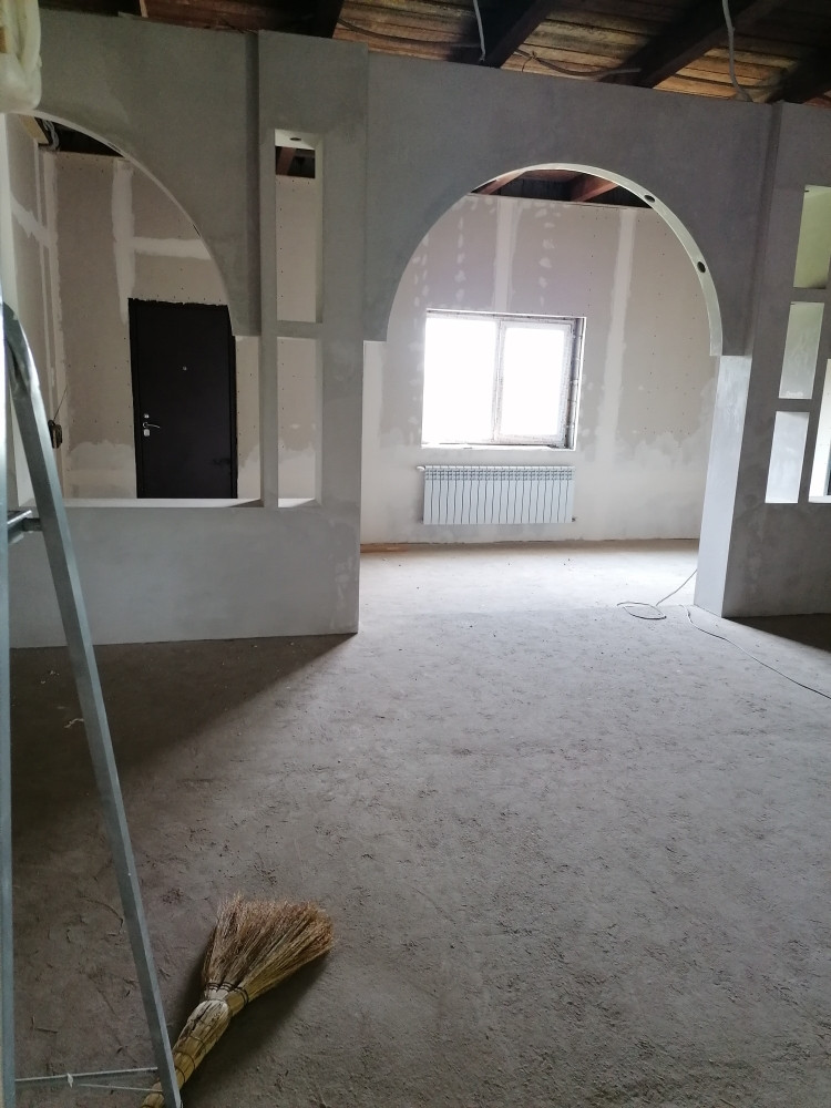 По первому этажу полностью проведена необходимая электропроводка. Отопление теплый водяной пол, проложено порядка 950м трубы, все фитинги, насосы, краны и прочая арматура надежных итальянских производителей. Батареи первого этажа биметалл. Котел 50кВТ длительного горения. Закуплен теплоноситель 400л для отопления (незамерзайка). Арки дома выполнены из OSB, хоть прыгай хоть скачи по ним, НЕ ГИПСОКАРТОН!