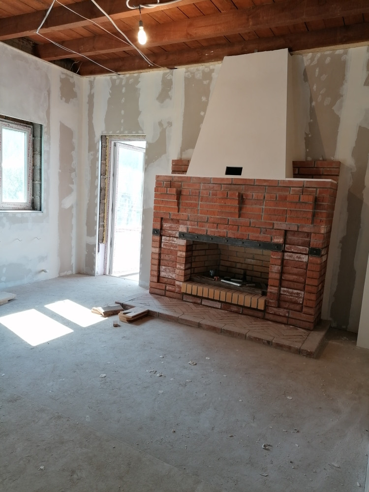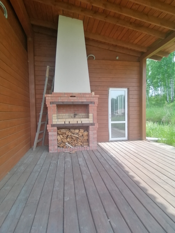 Свет, вода, септик 4 кольца на 2500. Камин двухсторонний внутрь дома камин, снаружи барбекю, все функционирует.