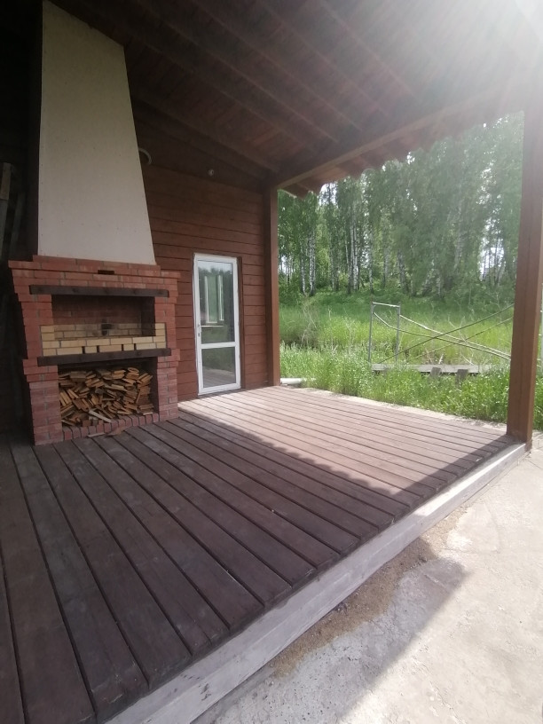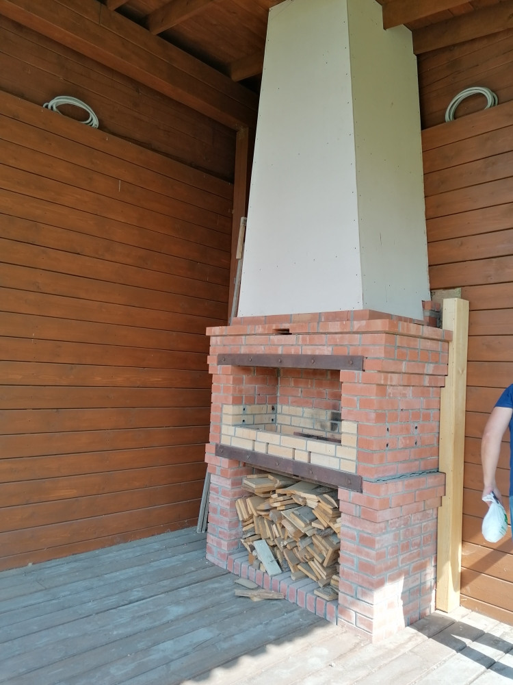 Свет, вода, септик 4 кольца на 2500. Камин двухсторонний внутрь дома камин, снаружи барбекю, все функционирует.