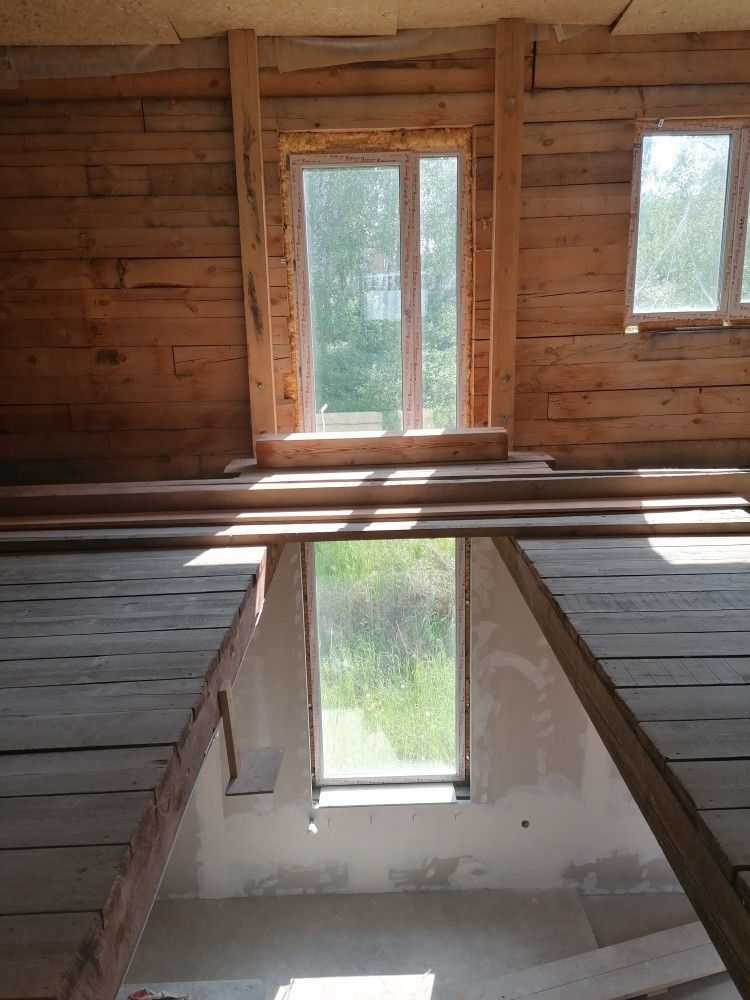 Второй этаж дерево, сосна брус на 18. Крыша утеплена 150мм пенополистирол, снизу подшит только для самого процесса утепления ОСБ, планировались и на первом и на втором этаже натяжные потолки. Цоколь из блоков фбс 40ка.
