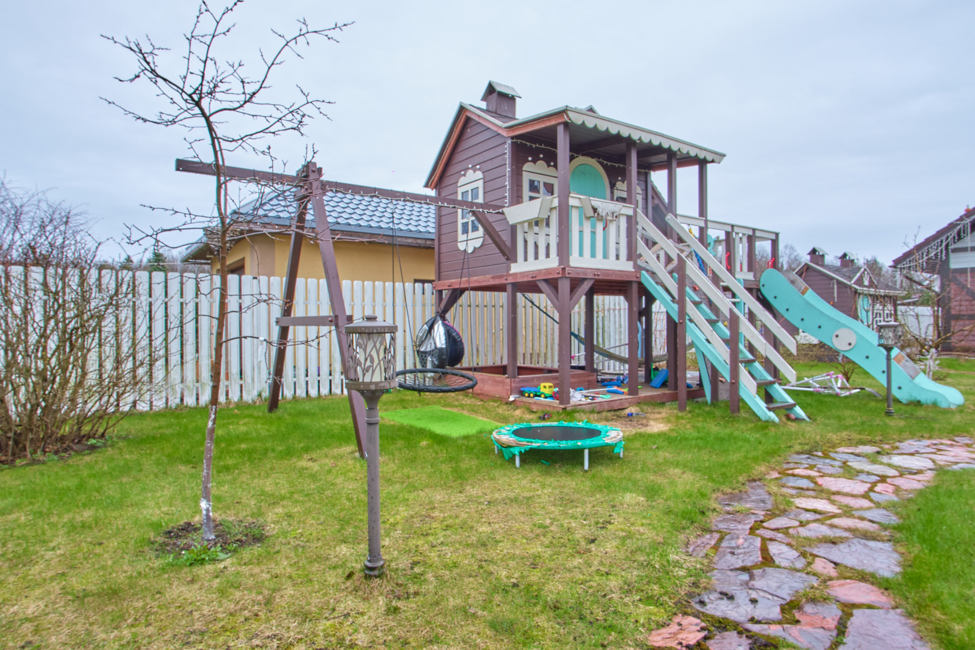 На участке также имеется детская площадка, где ваши дети смогут безопасно играть и проводить время на свежем воздухе. Кроме того, территория украшена различными насаждениями, которые придают участку особый шарм и создают атмосферу уюта.