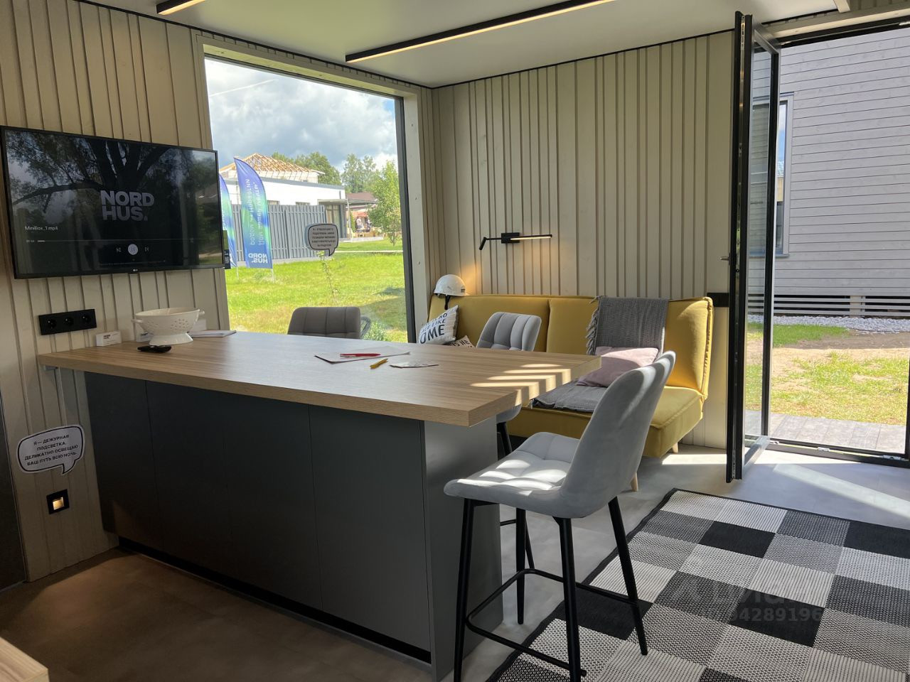 На участке есть мини-дом с отделкой, предполагается к вывозу или также может быть продан.