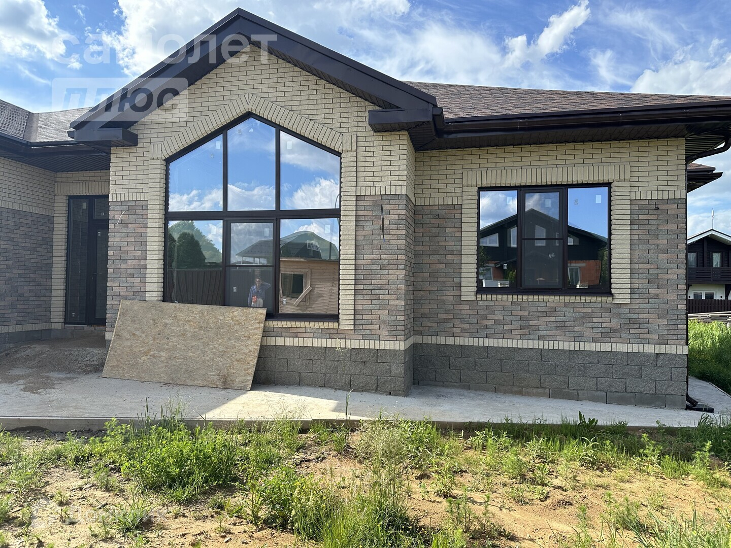Предусмотрена мангальная зона. Уже поставлен на кадастр, введены в эксплуатацию все коммуникации, в том числе проведен газ. Дом построен подрядчиками с соблюдением всех технологий, ГОСТов и СНИПов.
