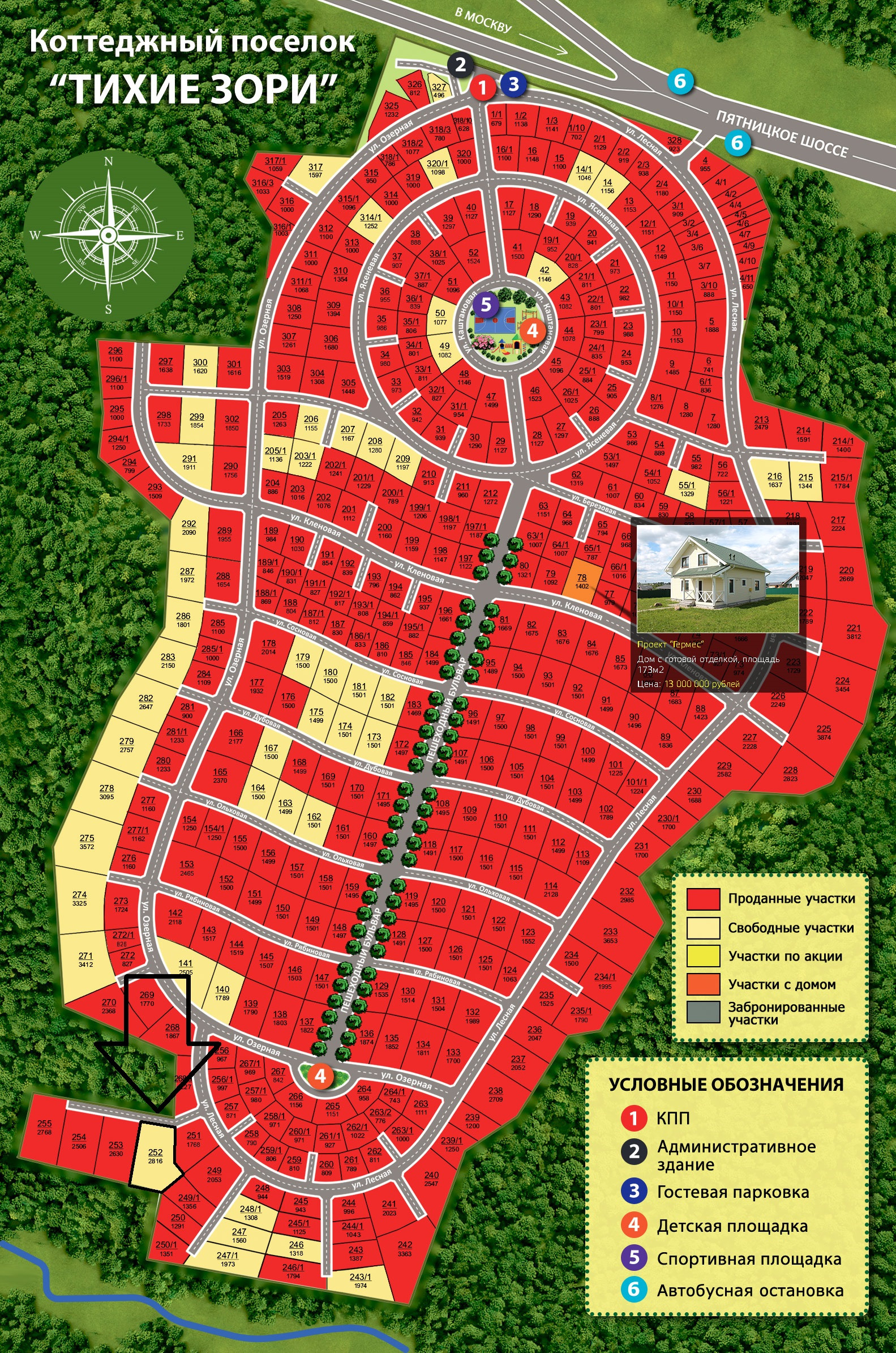 Участок 252, площадь 28,16 соток. Собственный выход в лес!!! Все действующие коммуникации: магистральный газ, электричество, вода, канализация, высокоскоростной интернет! Электричество, вода и канализация уже заведены на участок, Газ по границе. Поселок находится в очень красивом и уютном месте в окружении великолепного лесного массива. Удобная транспортная доступность, рядом автобусная остановка. Собственная служба эксплуатации. Развитая инфраструктура: детские и спортивные площадки, пешеходный бульвар, зона отдыха, Истринское водохранилище с оборудованным пляжем. В непосредственной близости: магазины, школы, детские сады. Возможность покупки по ипотеке.