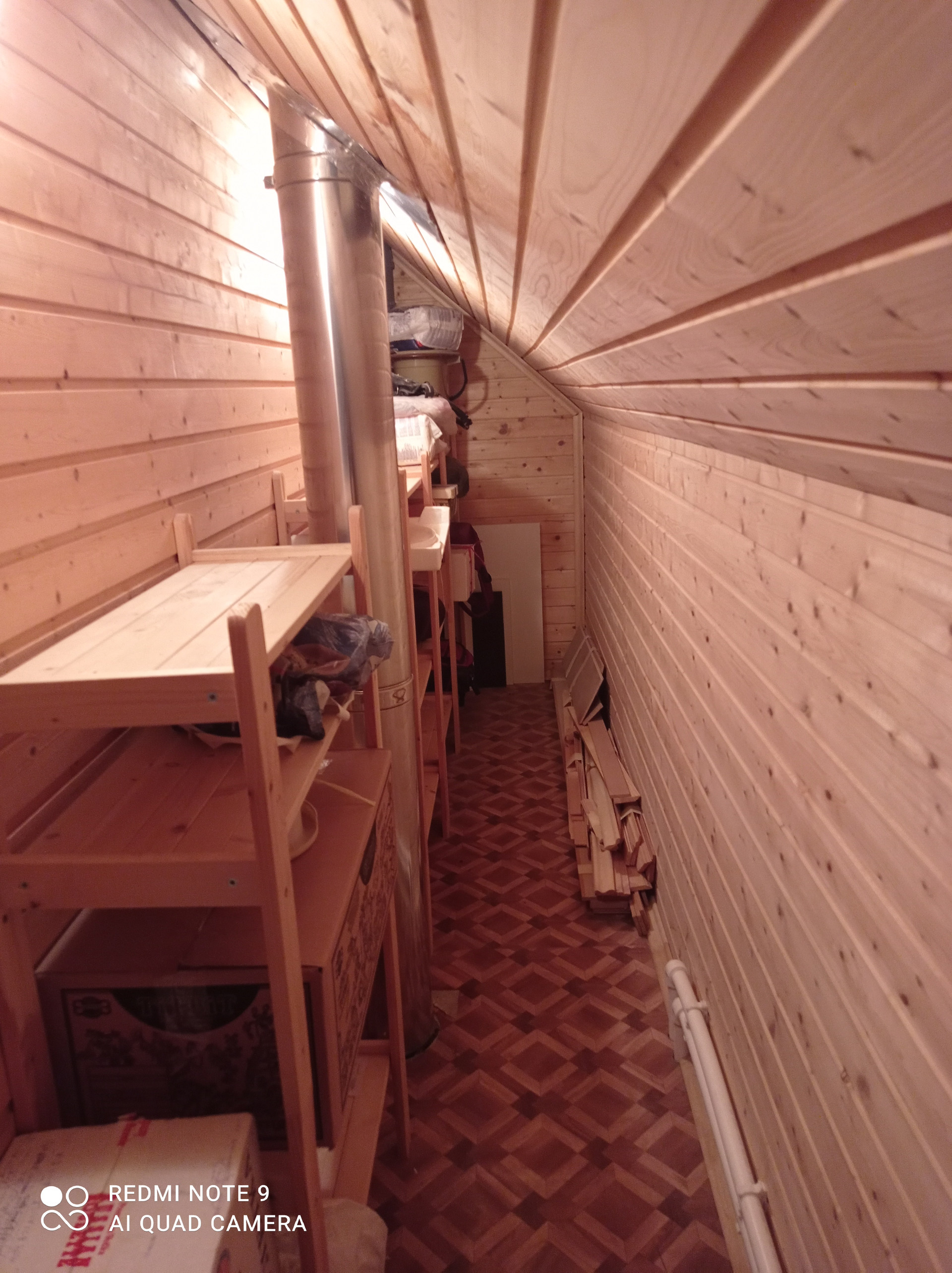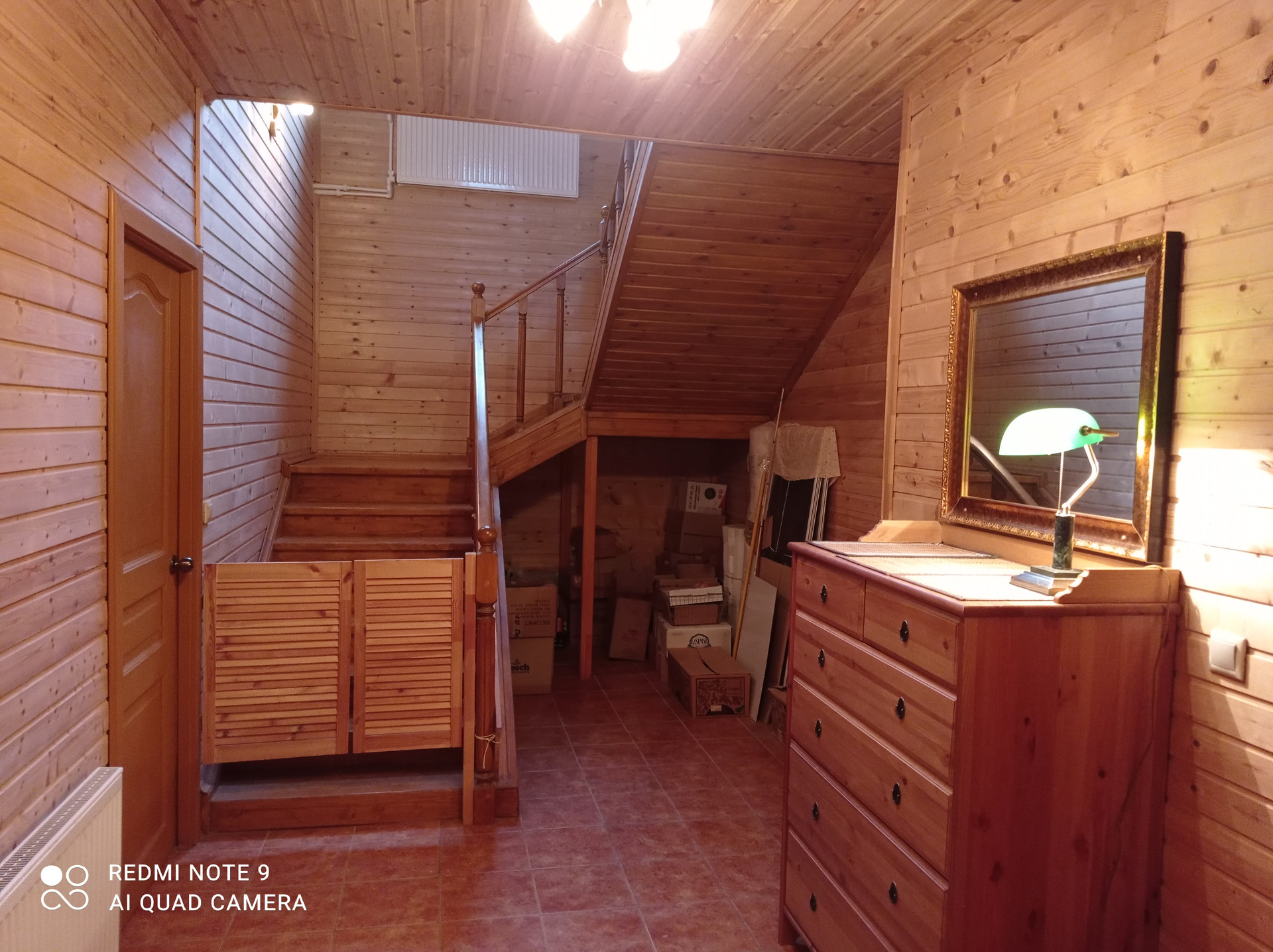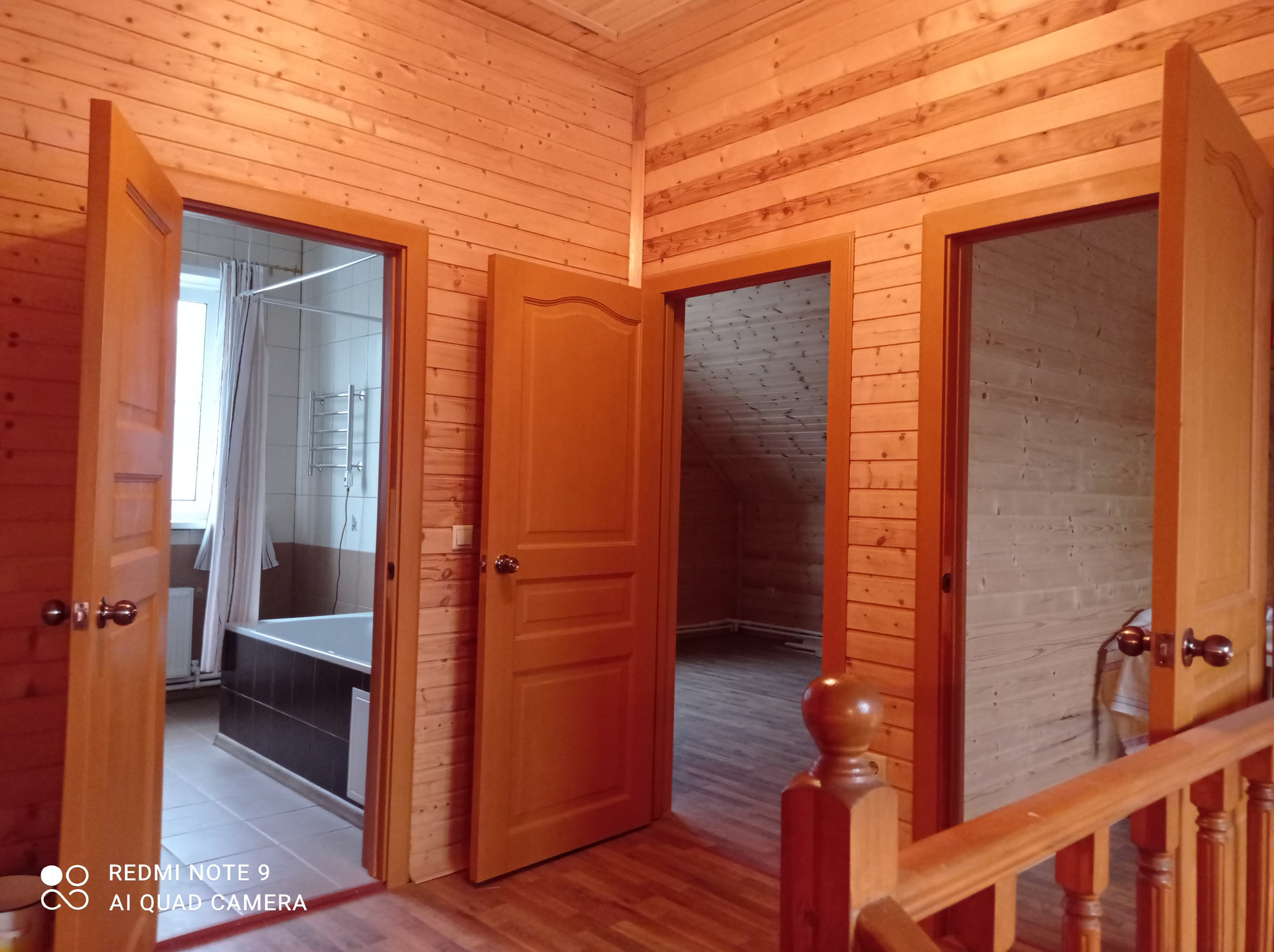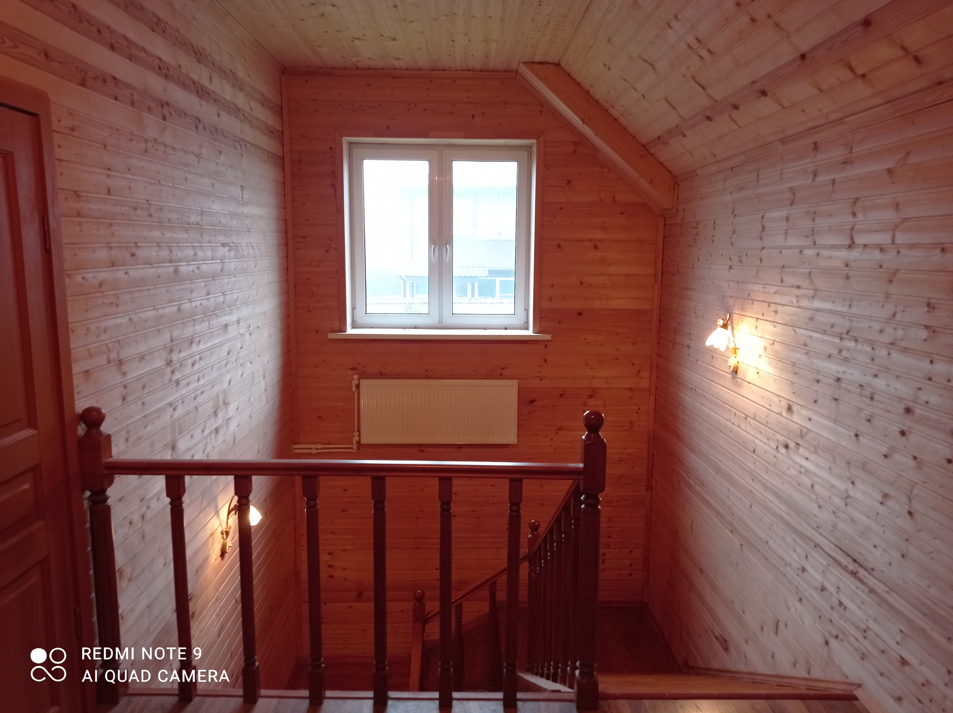 На 2й этаж ведёт удобная и широкая (1.5м) деревянная лестница с барьером (створчатый)