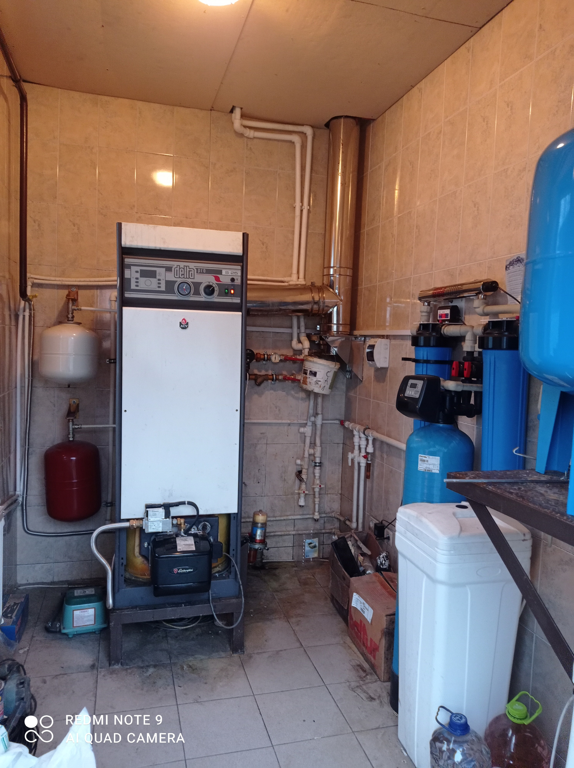В бойлерной находятся: надёжный газовый котел ACV Delta PRO S25 с газовой горелкой Lamborghini Caloreclima EM 3 E. Система подготовки воды с умягчением и УФ-очисткой. Установлена пожарная сигнализация с подачей сигнала на пульт наблюдения охранной компании и система автономного пожаротушения.