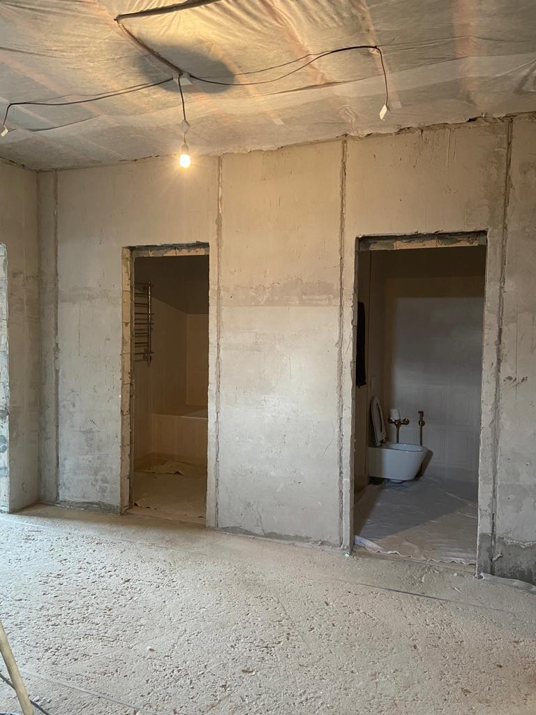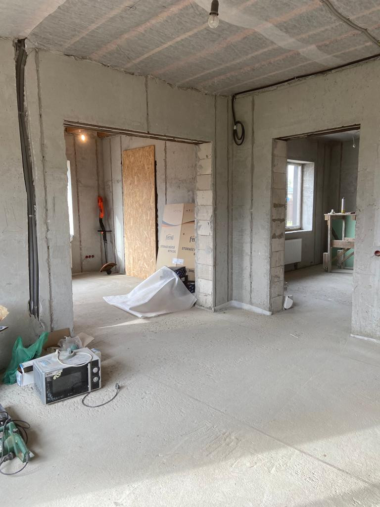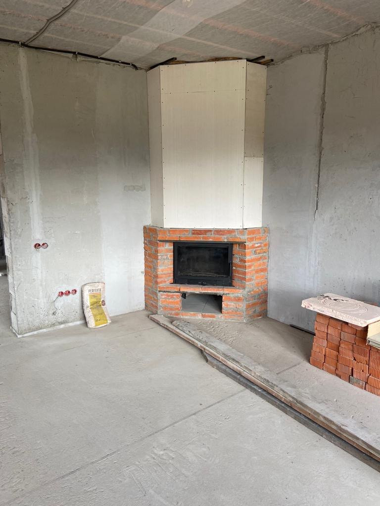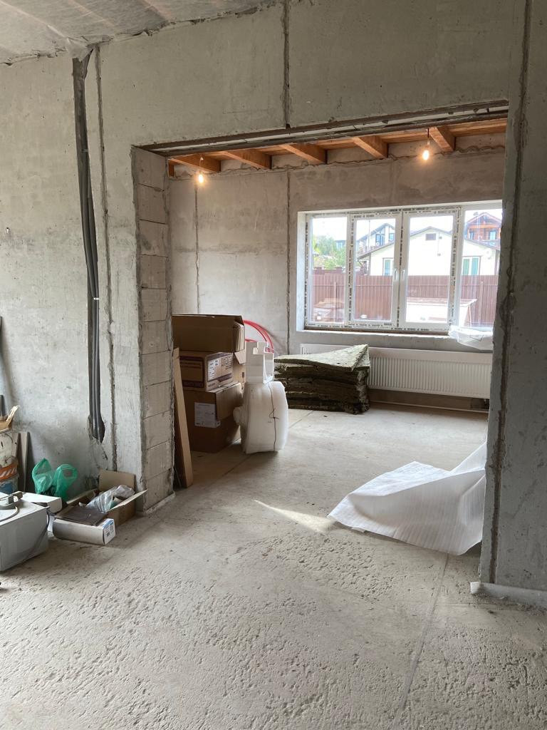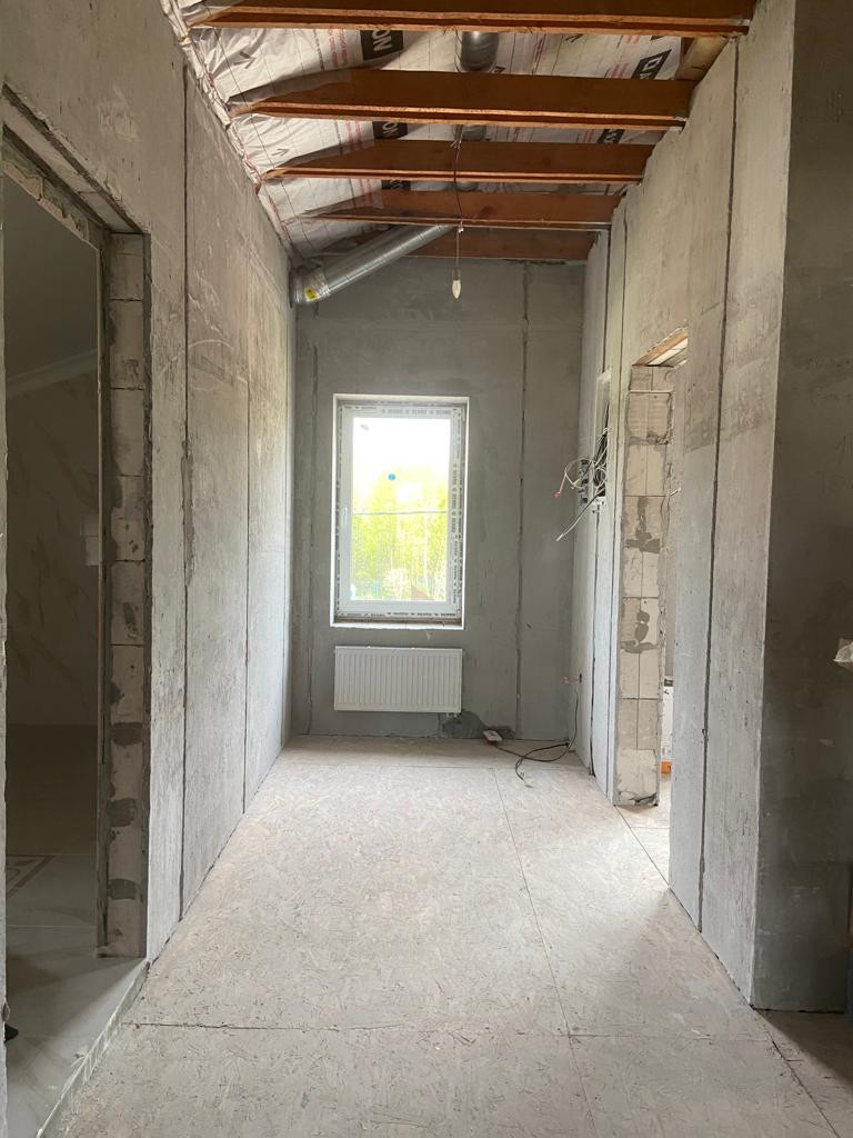 Внутри дома не закончен ремонт: стены отштукатурены на двух этажах, стяжка пола на первом этаже, дровяной камин; под ключ отделаны бойлерная и три санузла первого и второго этажа. Дом очень теплый и уютный, построен из качественных материалов, строили для себя.