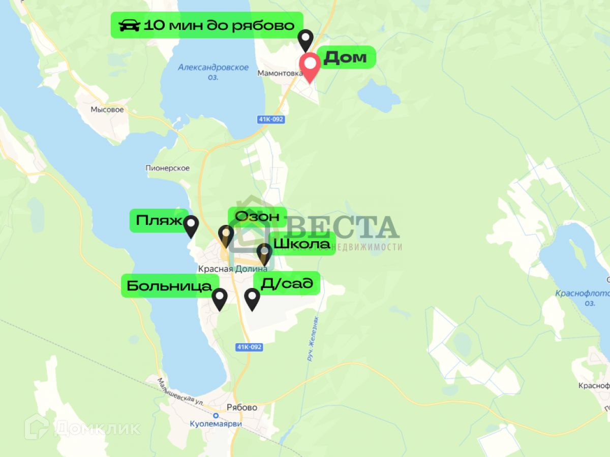 Природное окружение: озера: Мамонтовское, Александровское, Пионерское. Карельский лес, Финский залив.