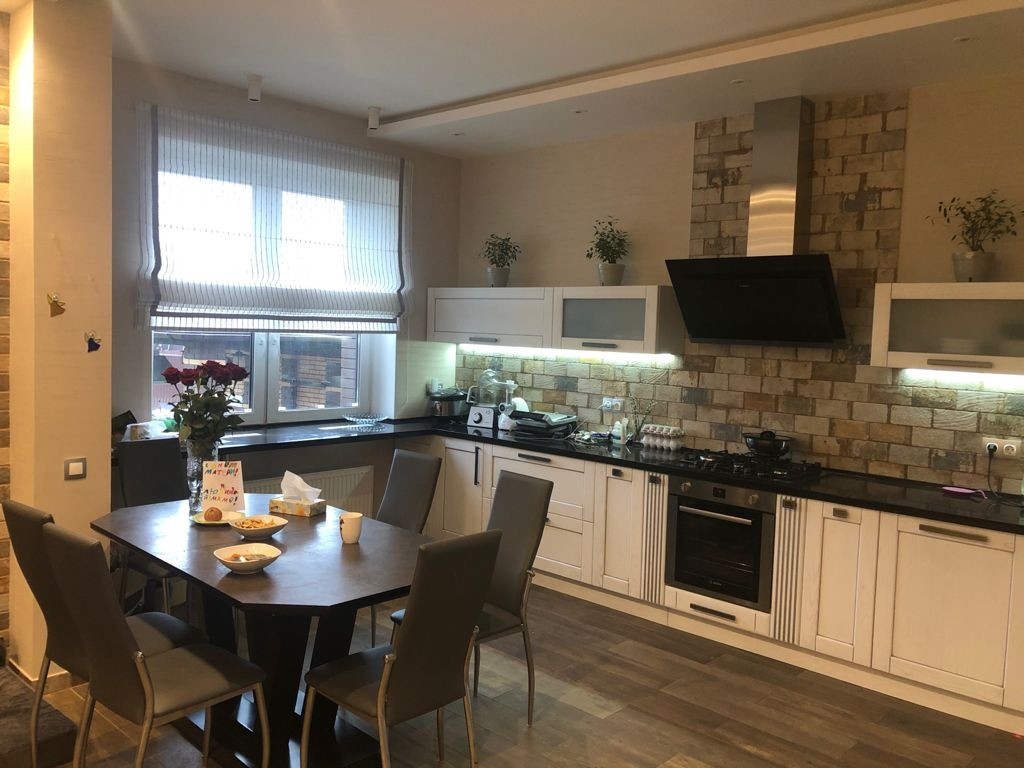 Дом  монолитно - блочный и обложен облицовочным кирпичем, имеет 3 этажа включая цоколь. Установлена приточно- вытяжная вентиляция фирмы Breezart. Все коммуникации центральные, газ магистральный, газовое отопление, немецкий котел Buderus. Трехфазное электричество, 16.5 кВт на дом.